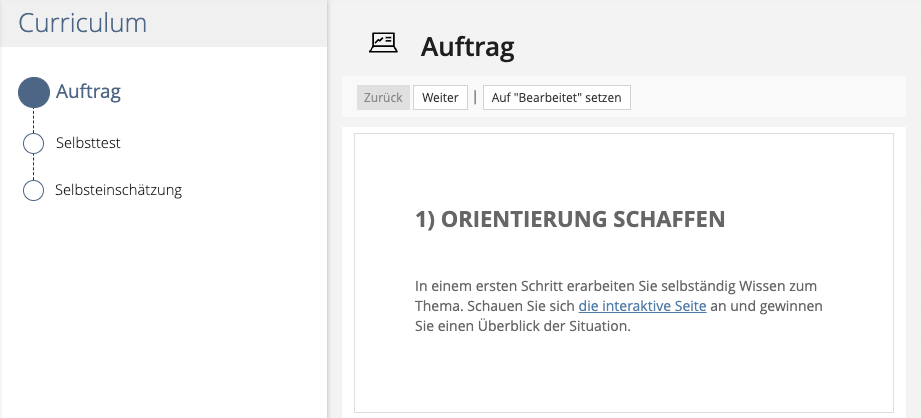 Ein Gefäss zum Festlegen einer Bearbeitungsabfolge von Lernobjekten.