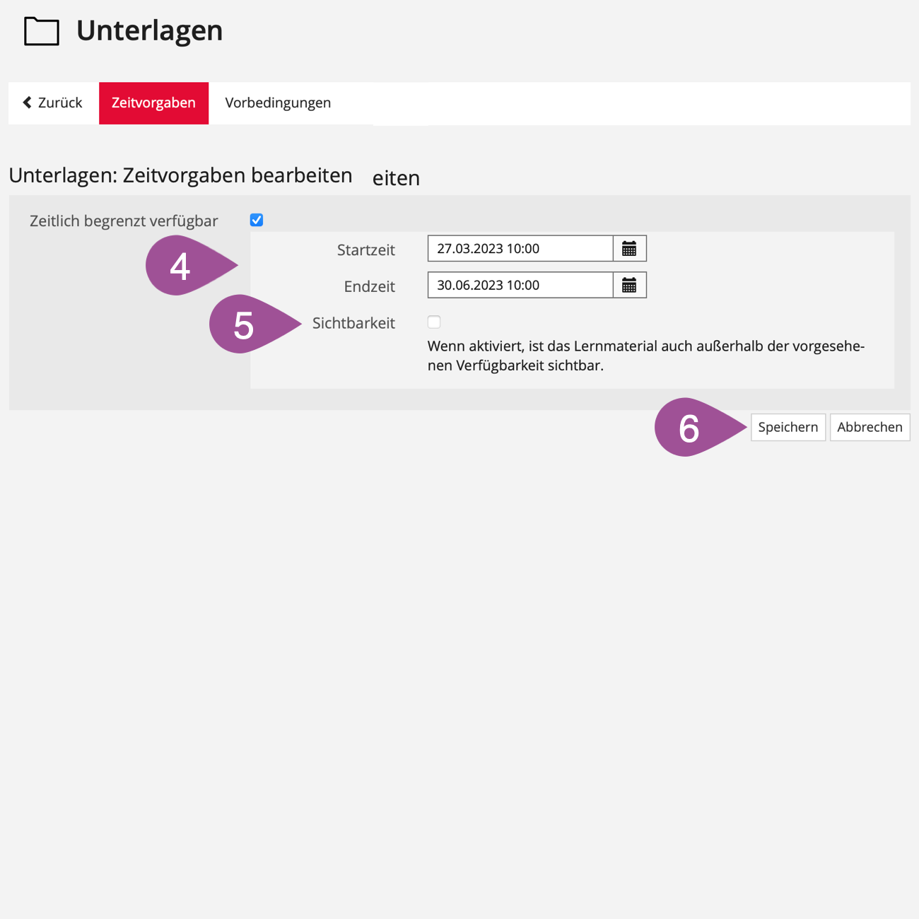 You can use a hidden folder to prepare documents and ILIAS items, for example. As soon as you want them to be accessible, you can move them into the course. The folder type can be changed later in the folder settings (see 2. Adjust settings & availability). | |