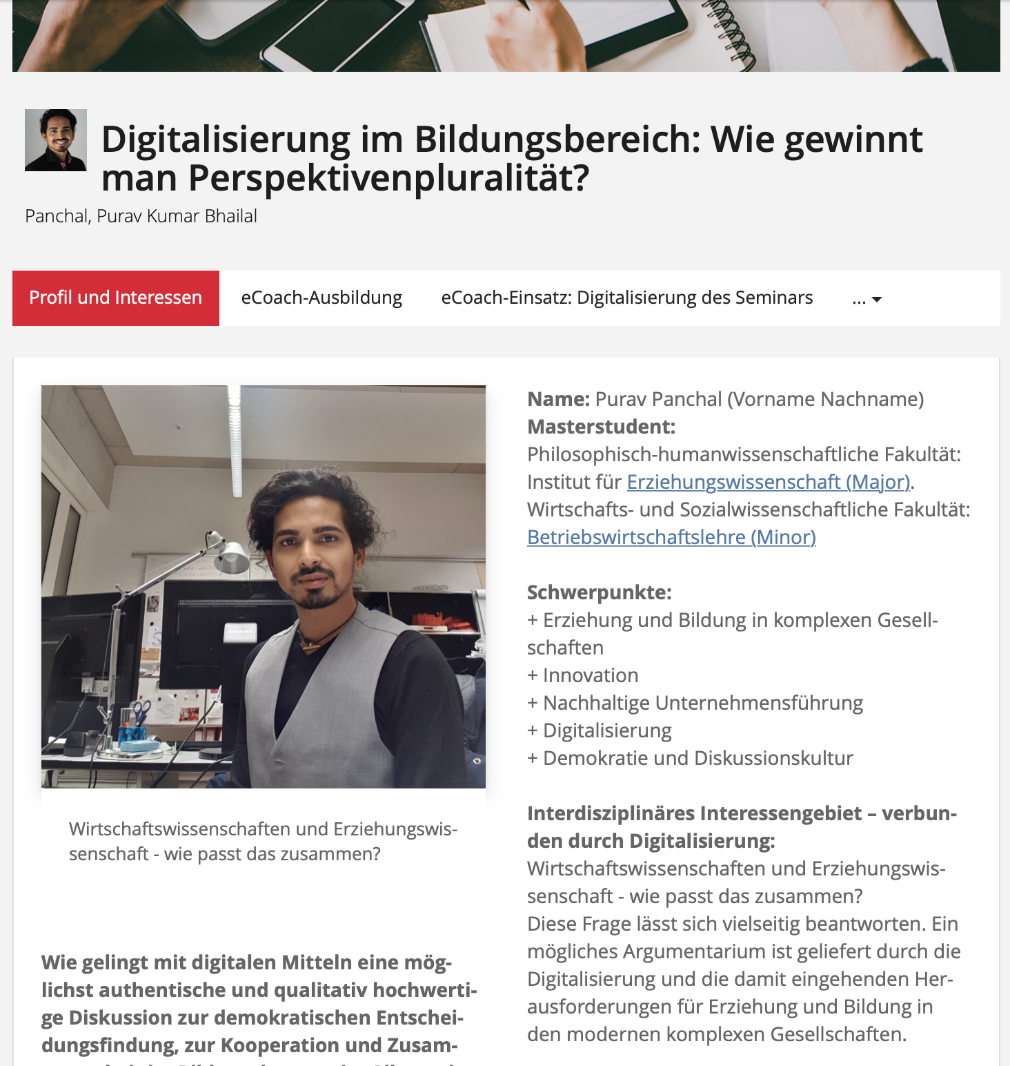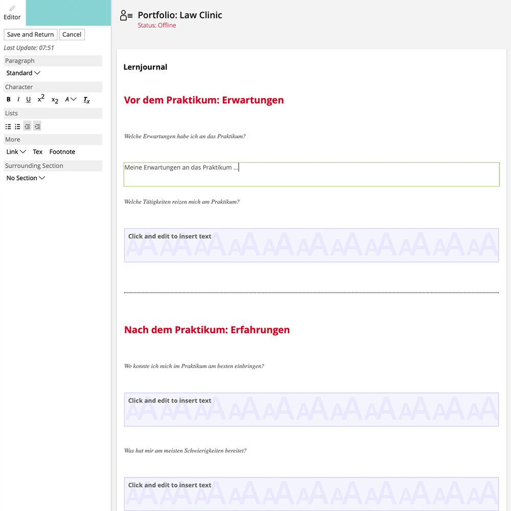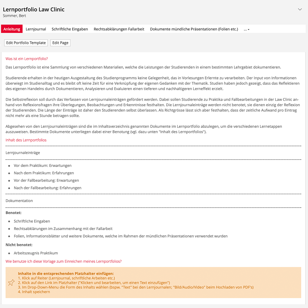 - Students design and structure their portfolio themselves, e.g. on several pages