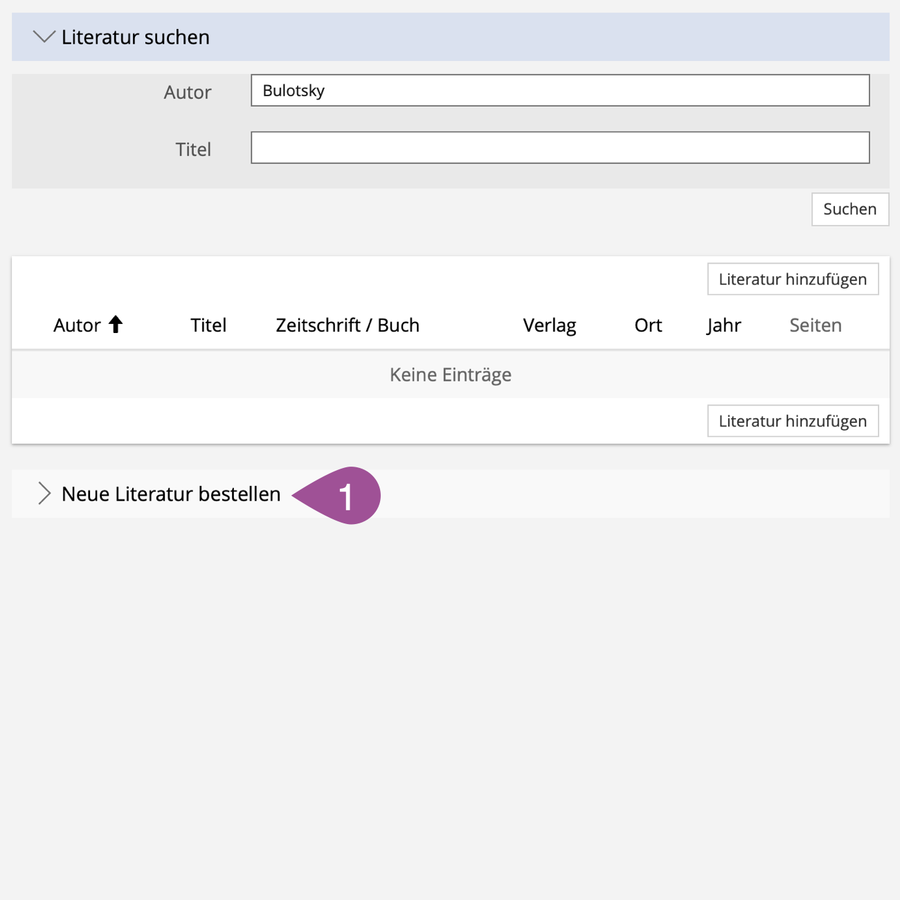 Klicken Sie auf den Bereich «Neue Literatur bestellen» am Ende der Resultate-Liste. | |