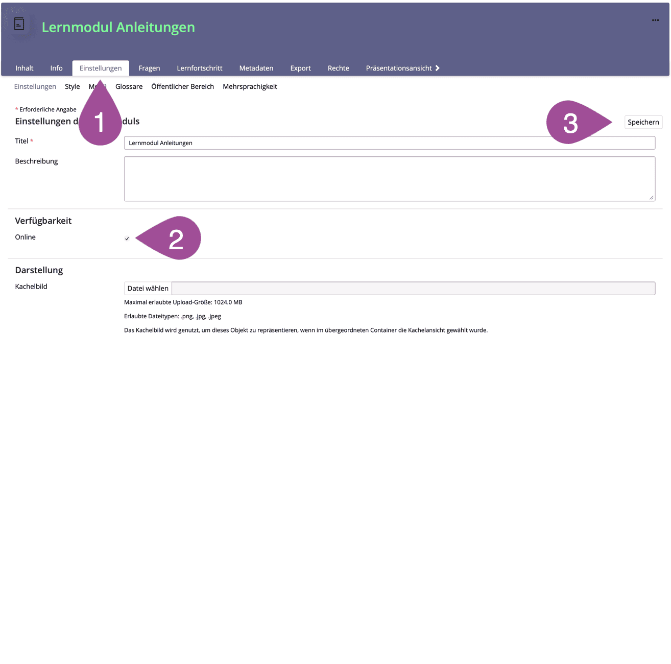 Geben Sie dem Lernmodul einen Titel. | |