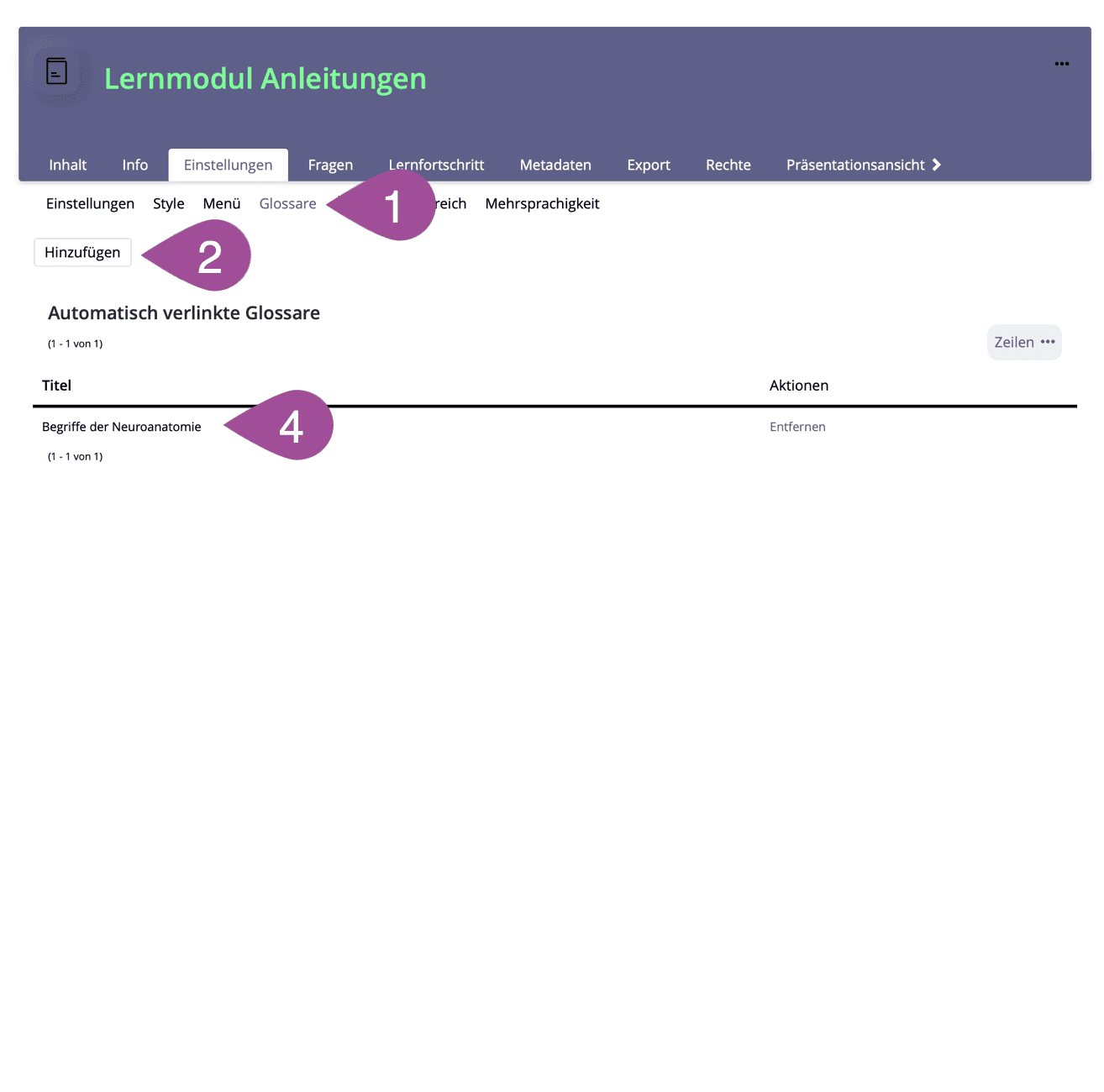3.2 Ein Lernmodul mit einem Glossar verbinden