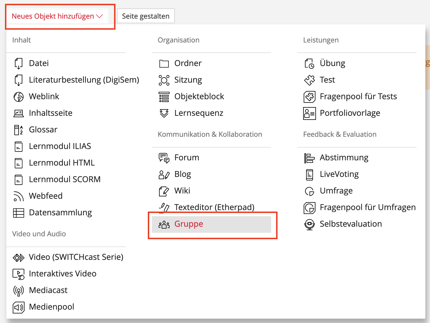 Mit dem ILIAS-Tool «Gruppe» eigenständige Terminanmeldungen und Gruppeneinteilungen für Studierende ermöglichen