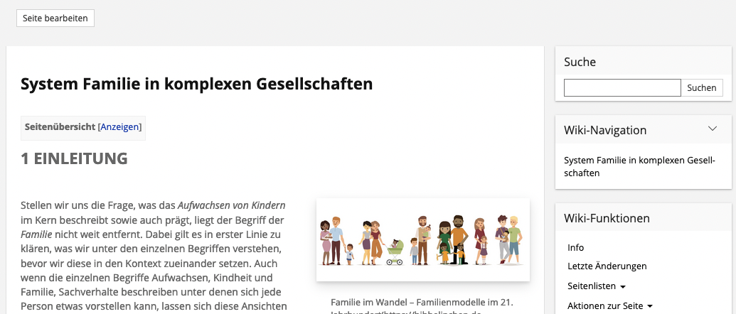 Aufgabenstellung und Ergebnisseiten im ILIAS-WIKI