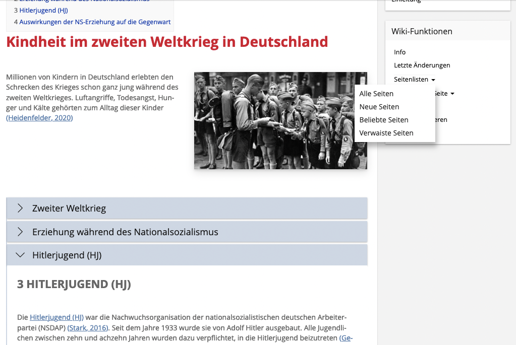 Eine Wissensaufbereitung mittels WIKI erfordert nicht nur den Erwerb von Wissen sondern auch eine Strukturierung der Inhalte über mehrere Artikel hinweg. Sowohl die Erarbeitung einer Mikrostruktur (z.B. wie ist ein einzelner Artikel aufgebaut) als auch einer Makrostruktur (z.B. wie verlinken die einzelnen Artikel aufeinander) erfordert eine vertiefte Auseinandersetzung mit dem Thema und auch eine Kollaboration mit den anderen AutorInnen.