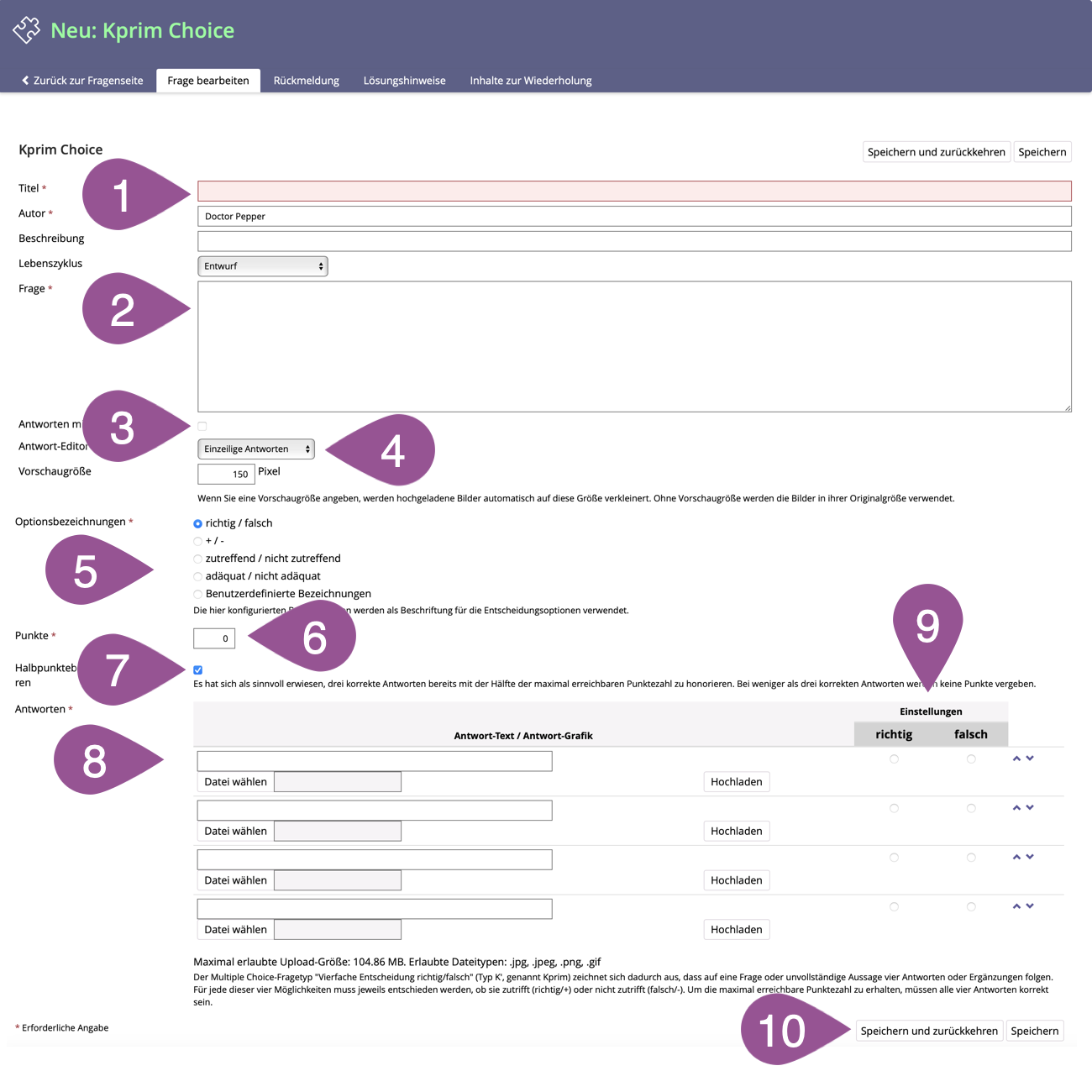 4. Fragen erstellen, einfügen & editieren