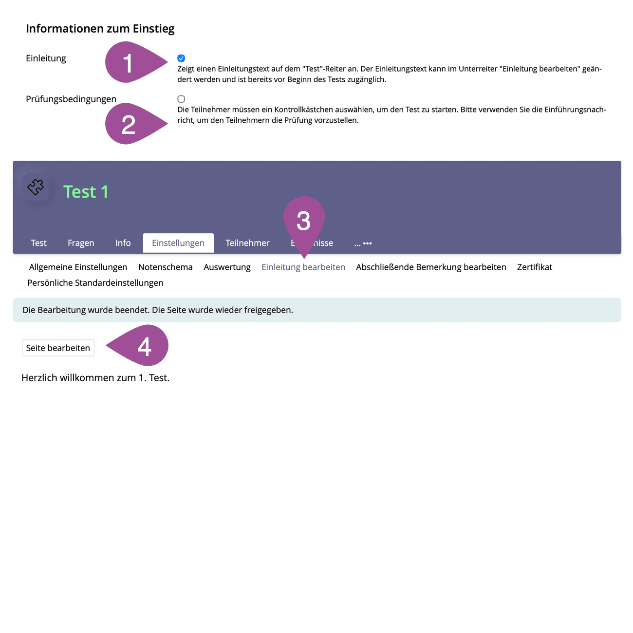 Klicken Sie auf "Seite bearbeiten", um den gewünschten Einleitungstext zu schreiben. Dieser Text ist jedoch nur zu sehen, wenn das Häckchen bei Schritt 1 gesetzt wurde. |
