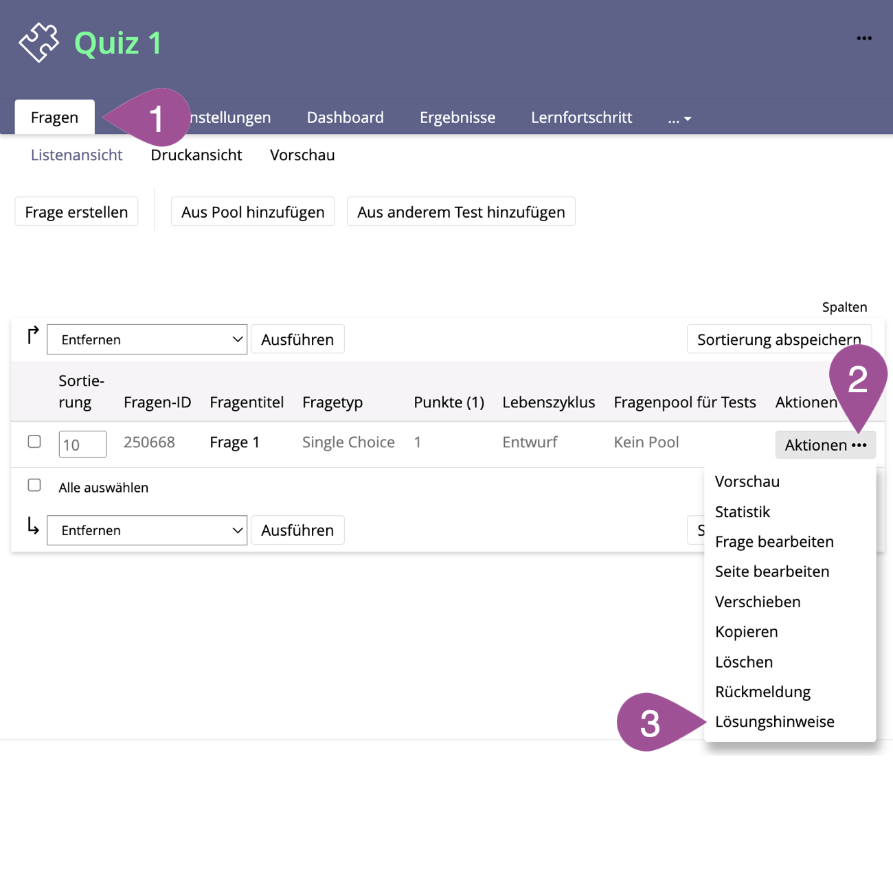 Öffnen Sie das Aktionenmenü der Frage. | |||||