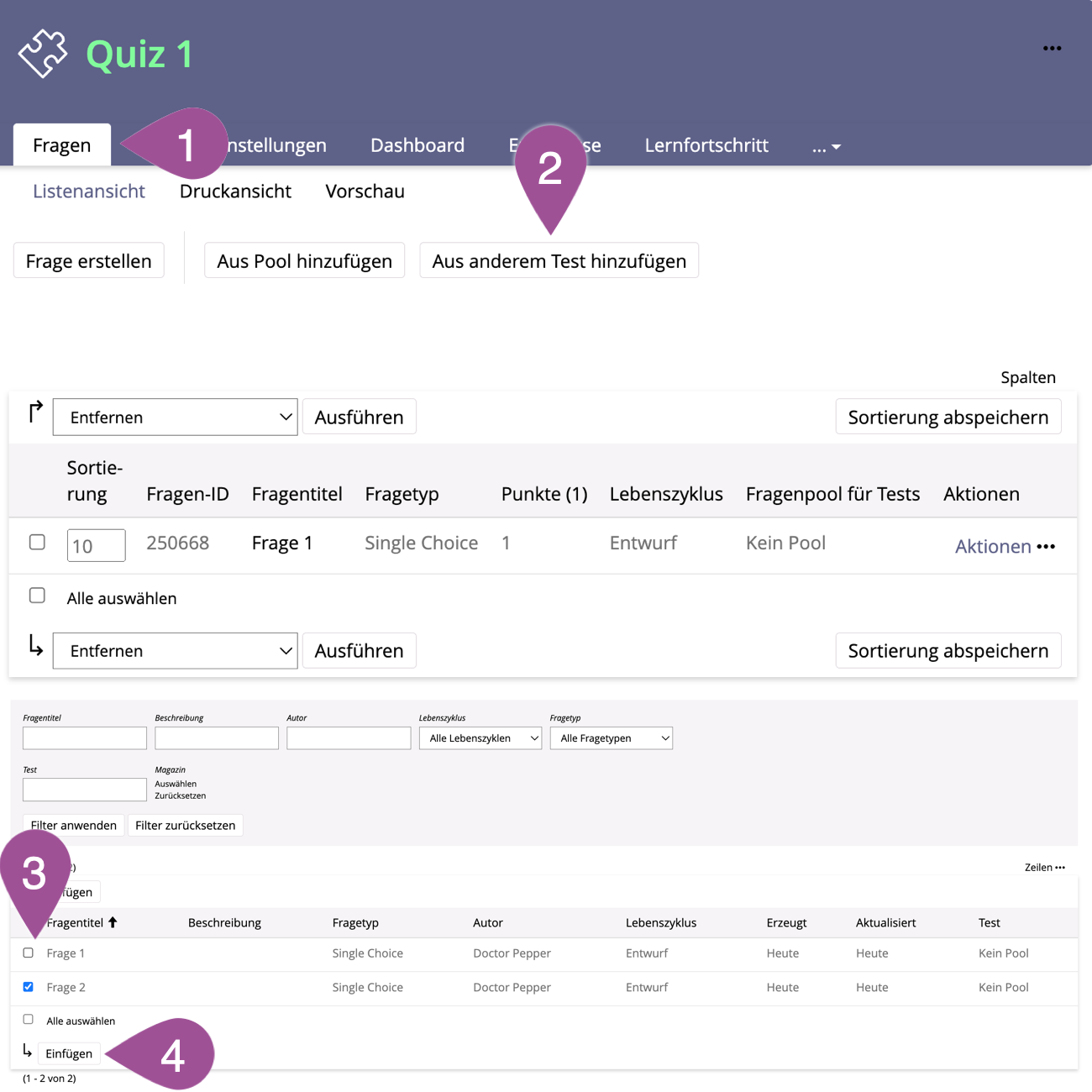 4.9 Fragen aus einem anderen Test einfügen