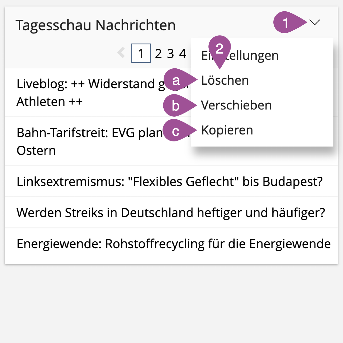 3. Delete, move or copy web feed