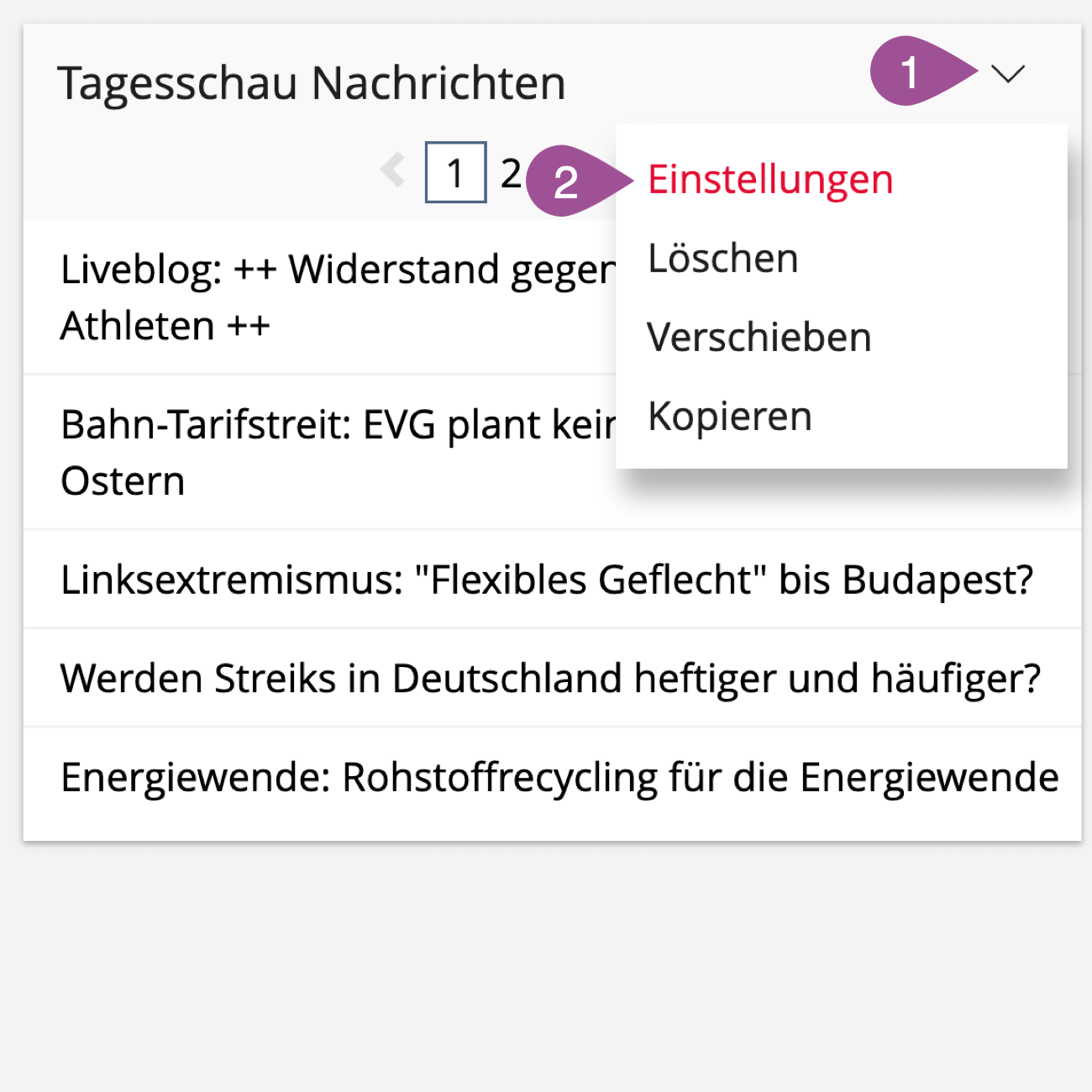 Open the web feed's actions menu. | |||||||