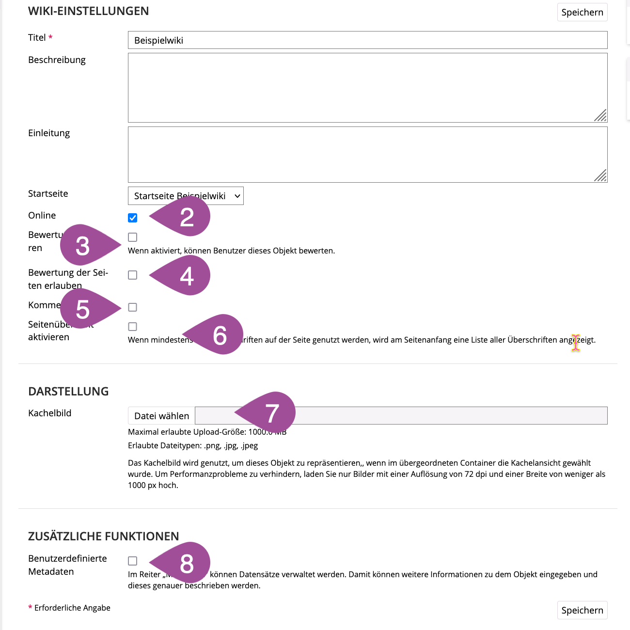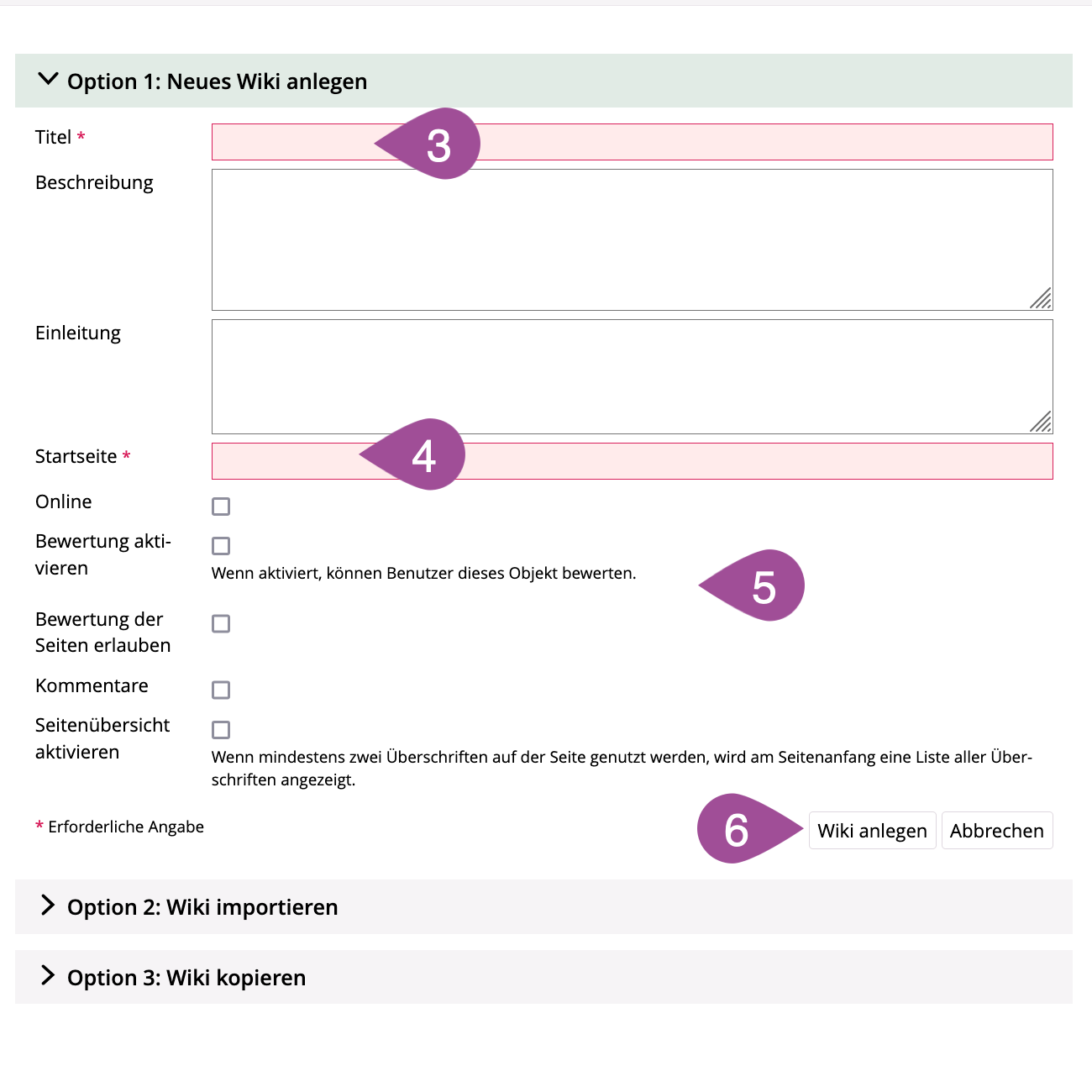 If you want to create several wiki pages with the same layout, you can save existing pages as a template. You can then use this template to create new pages (see 3.1 Create a wiki page) and/or add it to existing pages (see Point 4). This way, you do not have to insert recurring elements on each page individually.