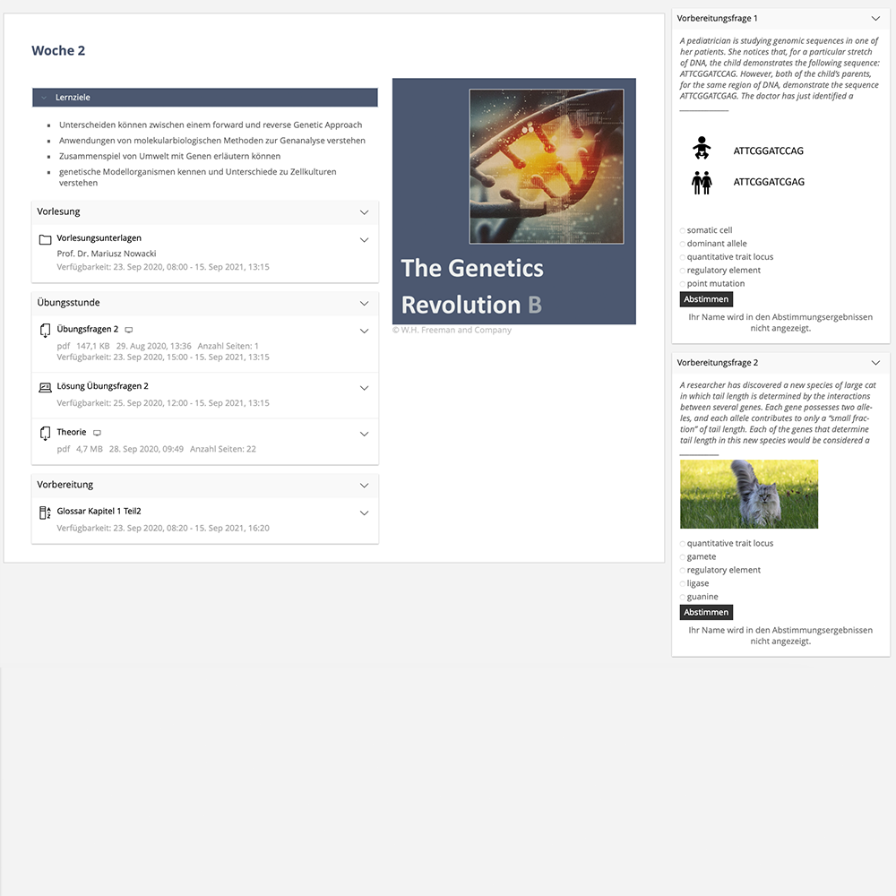 - Die Abstimmung wird rechts neben den Inhalten im ILIAS Kursraum angezeigt