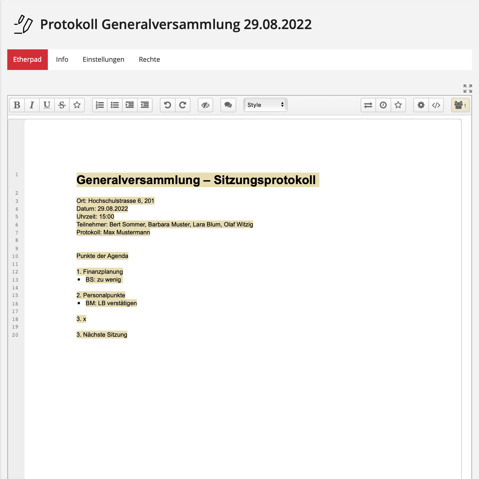 Im Etherpad können mehrere Personen gleichzeitig protokollieren