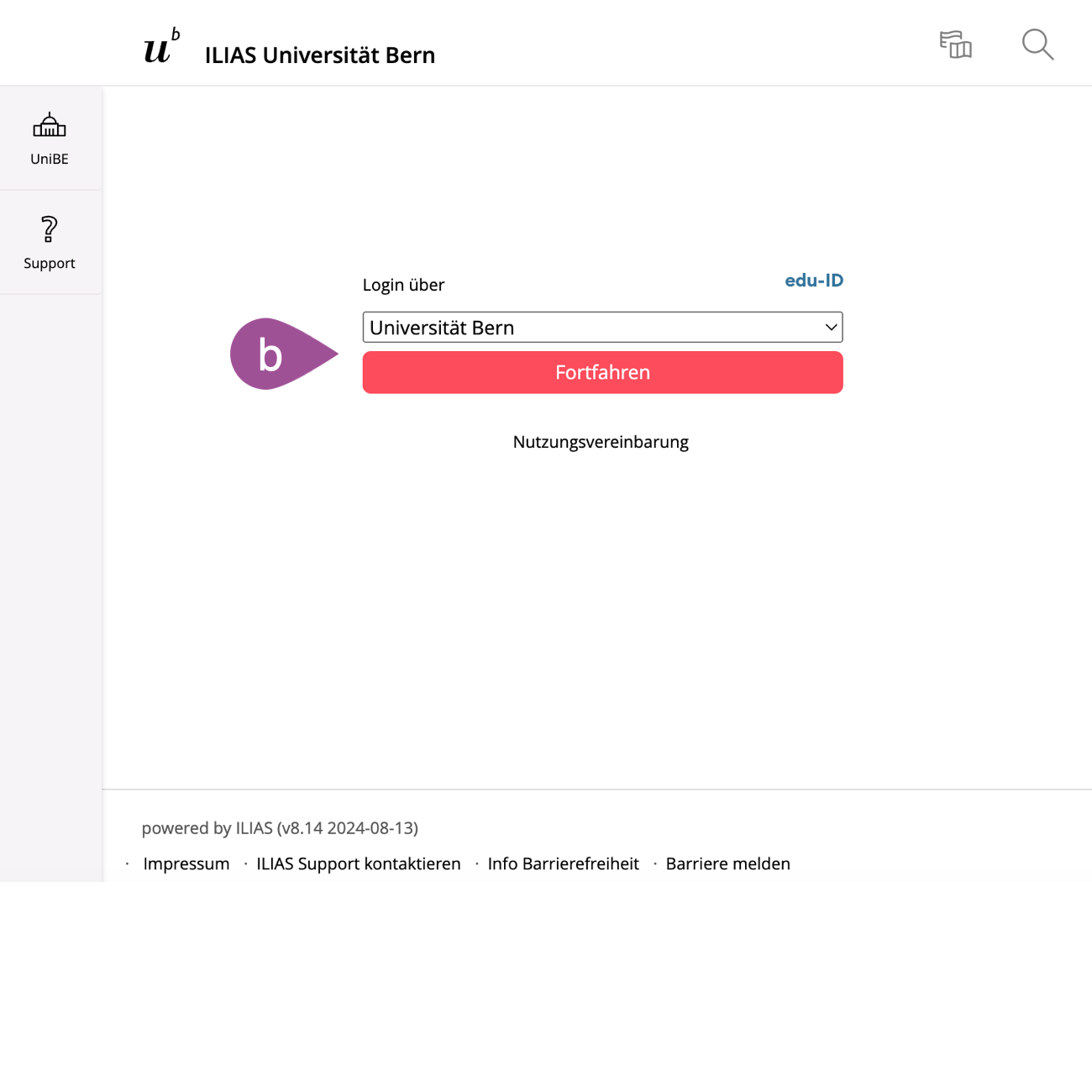 Um sich auf ILIAS einzuloggen, gehen Sie auf ilias.unibe.ch.