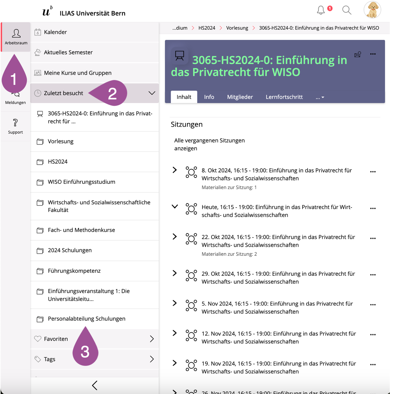 3. Der ILIAS Arbeitsraum - Gezielter Navigieren