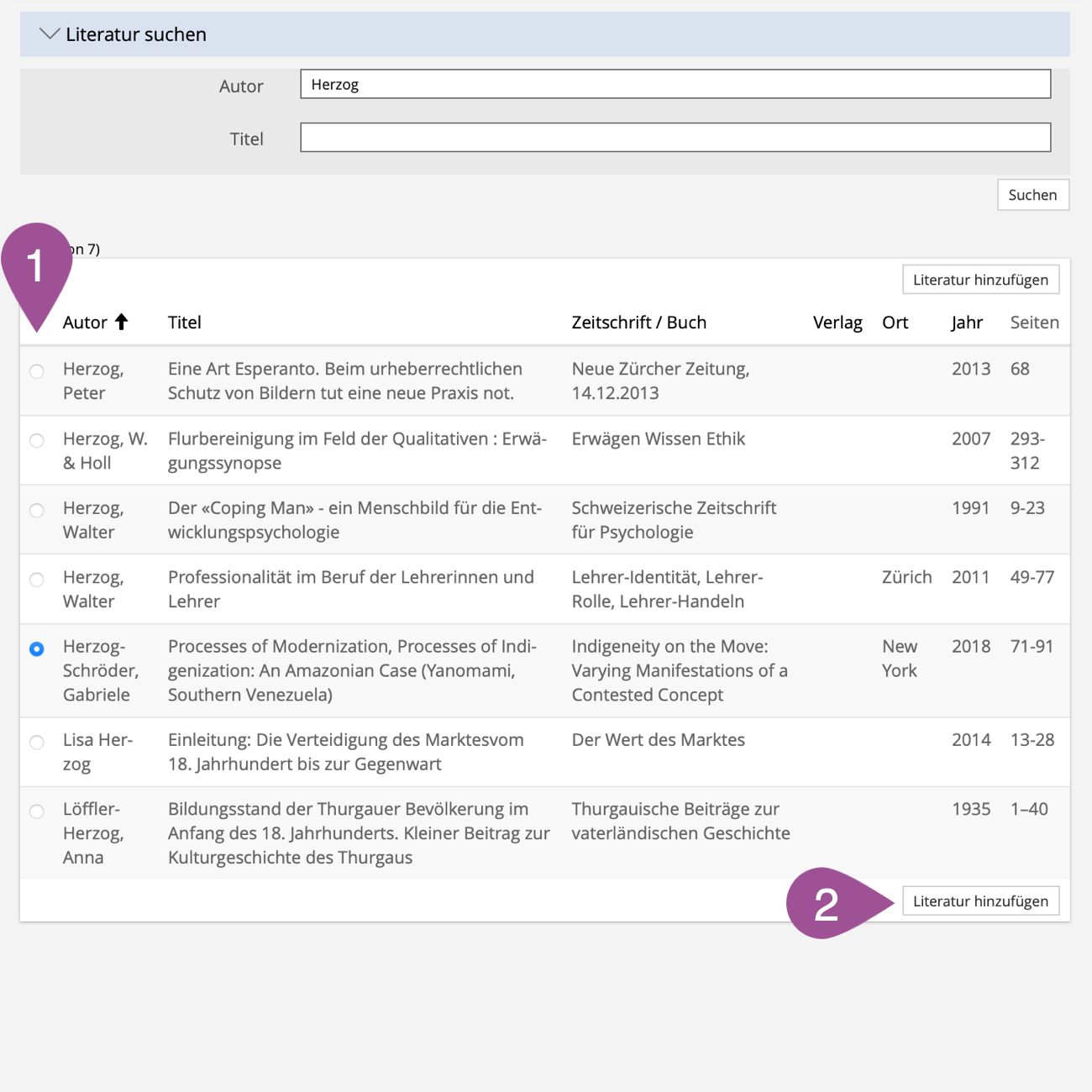 Wählen Sie den gewünschten Literatureintrag aus. | |