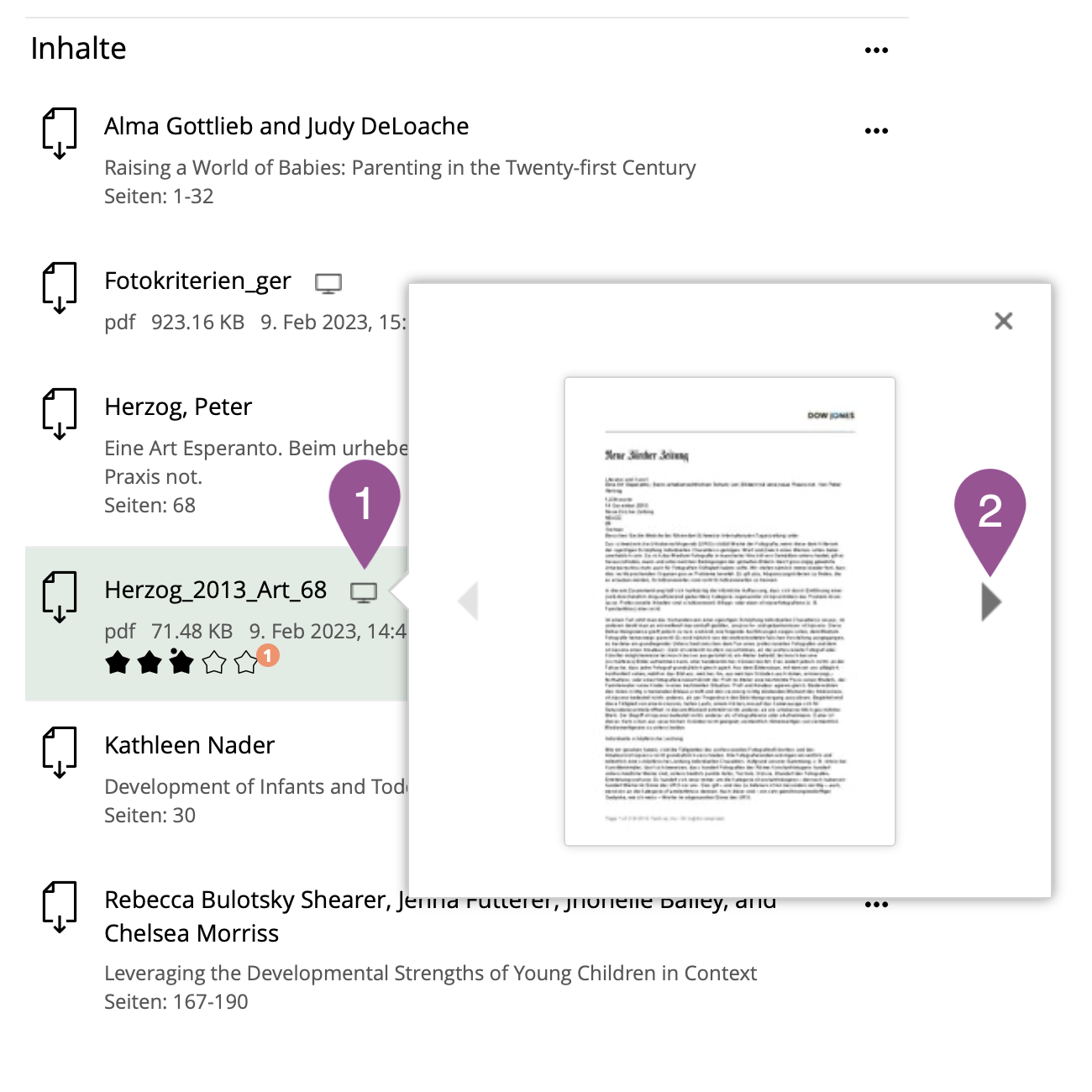 PDF-Dateien und die gängigsten Bild-Dateien haben eine Vorschau (über mehrere Seiten). Mit der Vorschau können Sie schneller beurteilen, ob Sie die richtige Datei herunterladen oder eine andere herunterladen möchten.