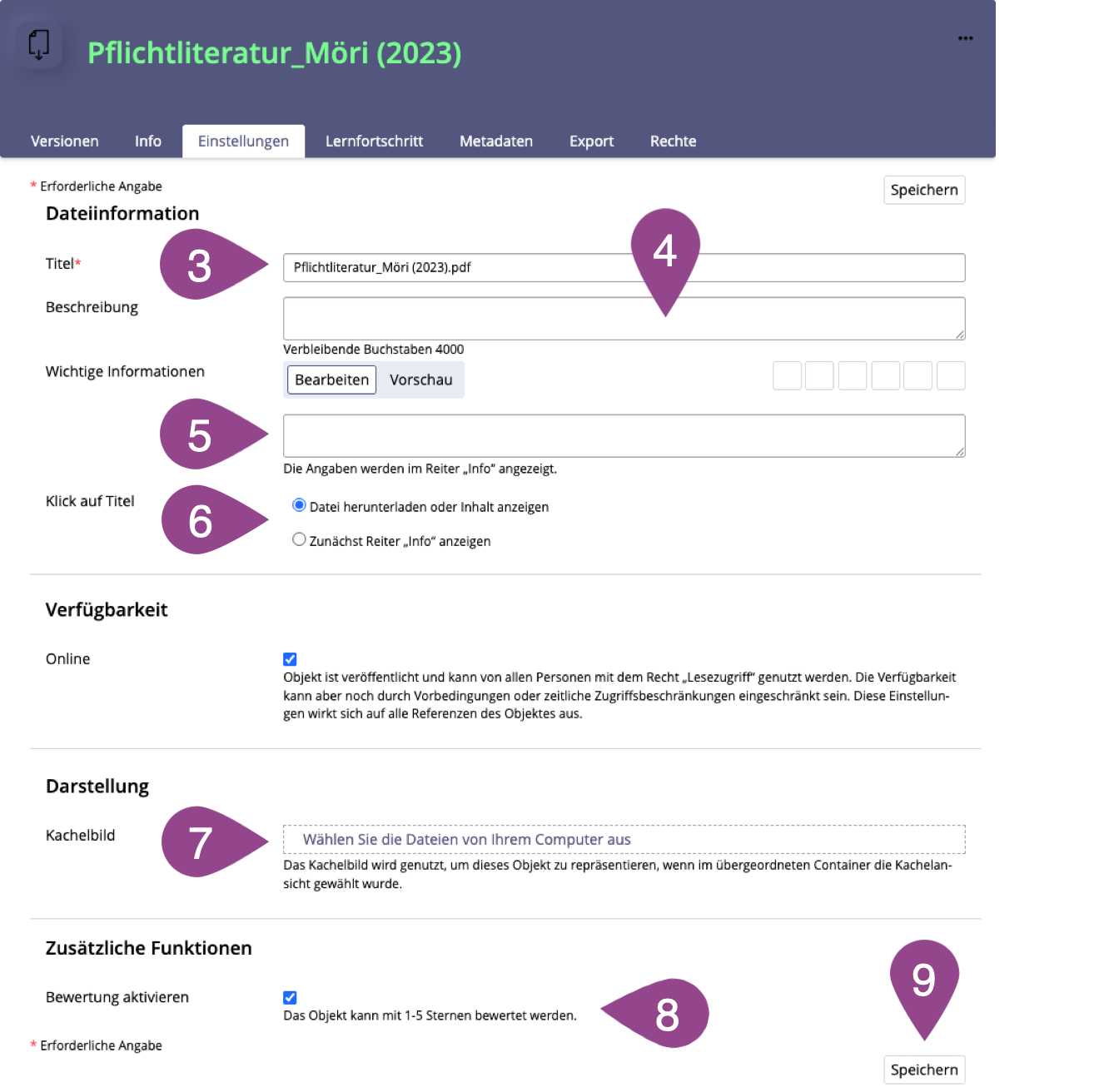Sie können den Anzeigetitel der Datei ändern. | |