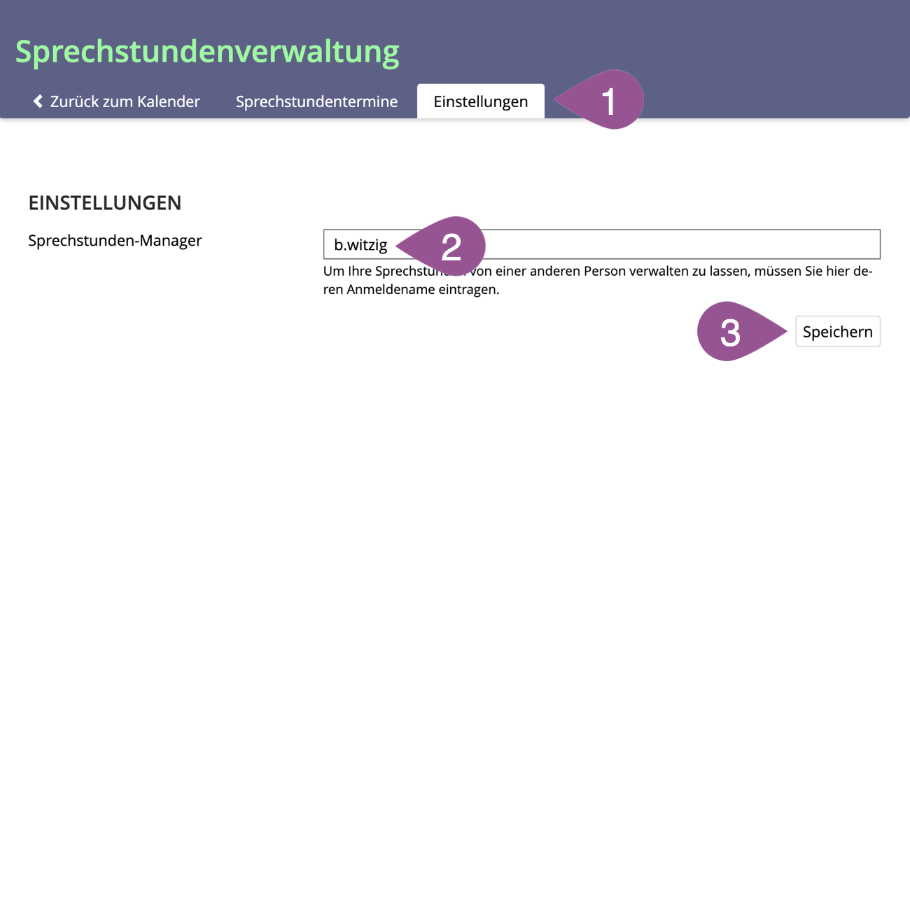 Sie können anderen Benutzer:innen ermöglichen, für Sie Sprechstunden zu erstellen und zu verwalten.