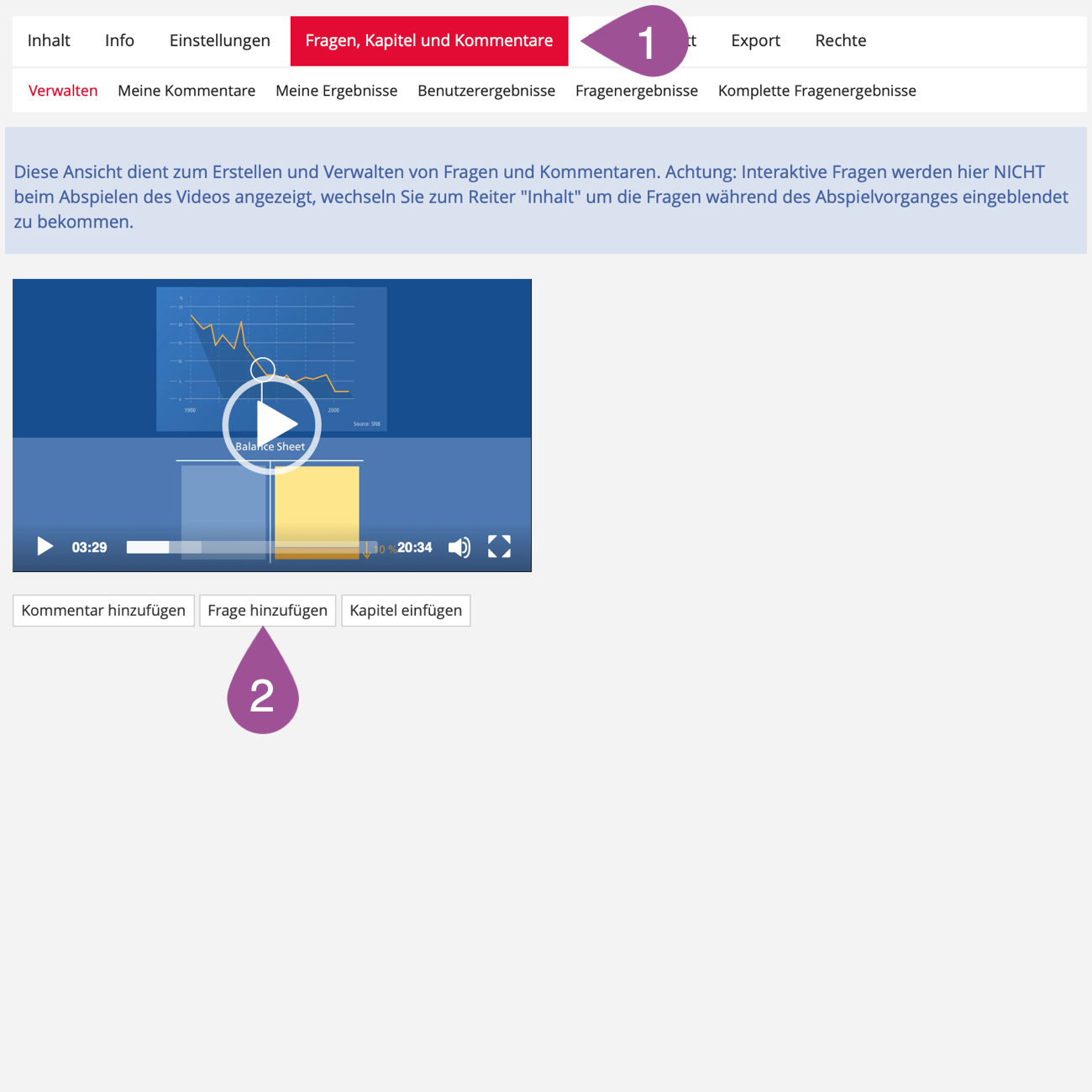 Navigieren Sie Im Video zum gewünschten Zeitpunkt und klicken Sie auf «Frage hinzufügen». | |