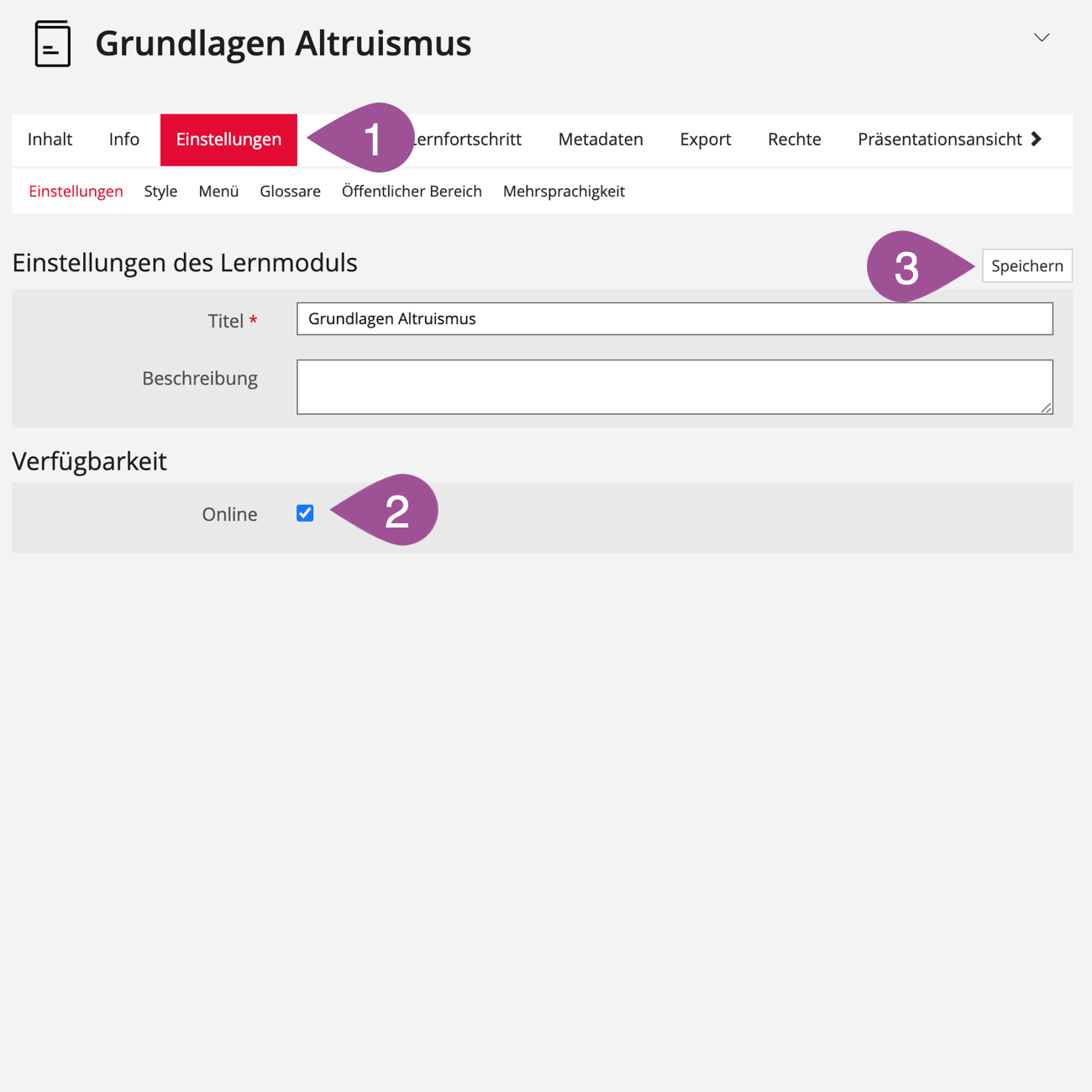Geben Sie dem Lernmodul einen Titel. | |