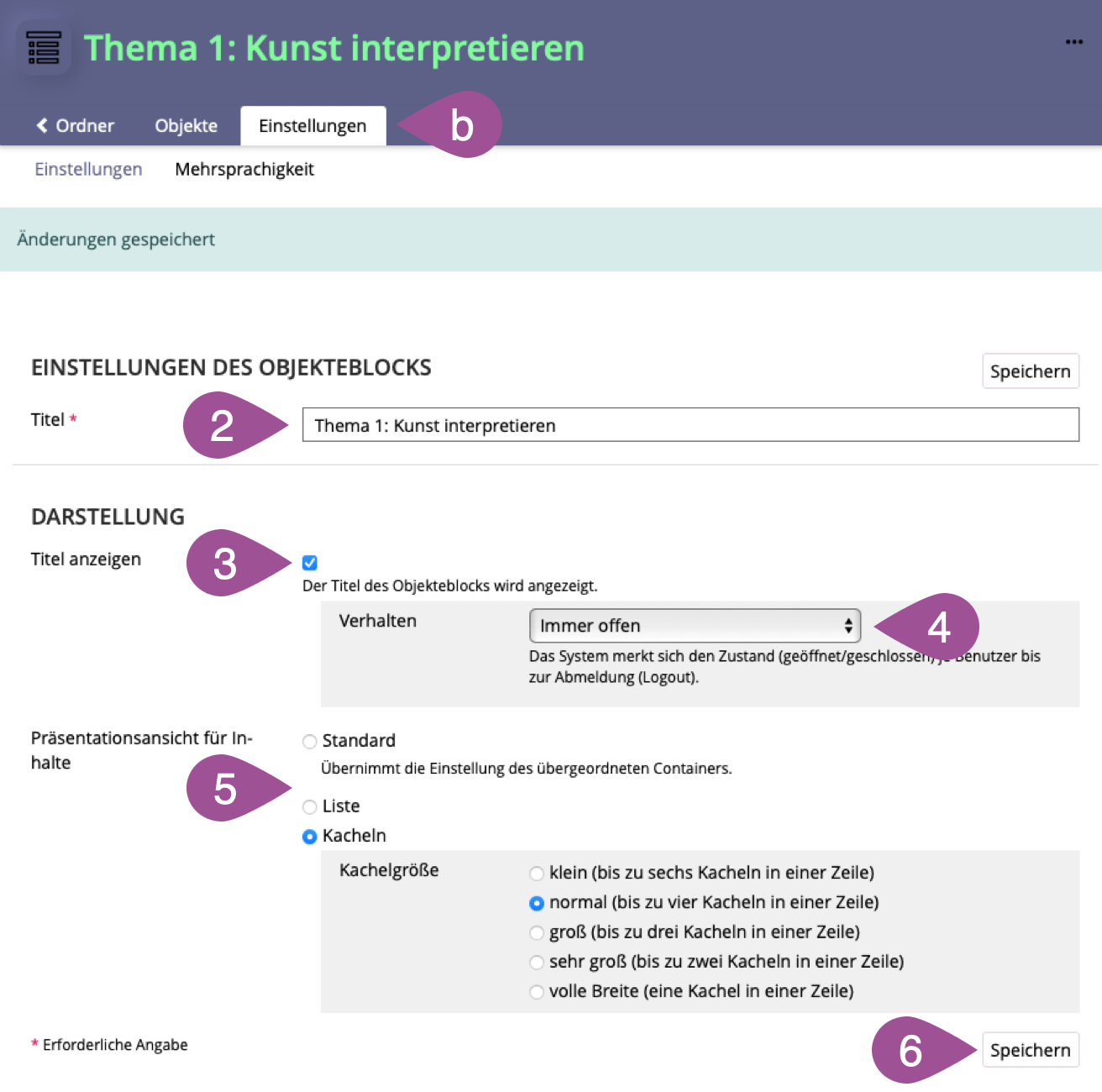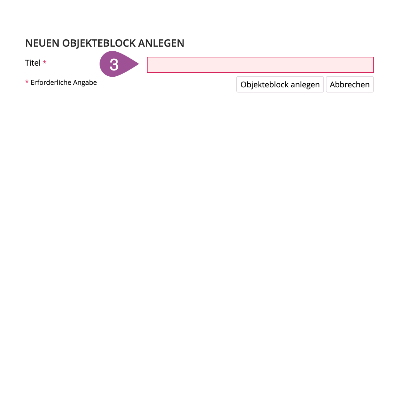 Geben Sie dem Objekteblock einen «Titel». | |