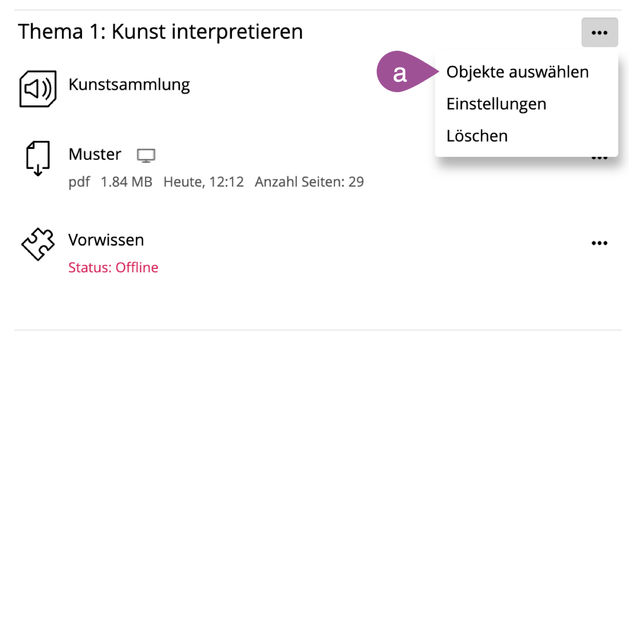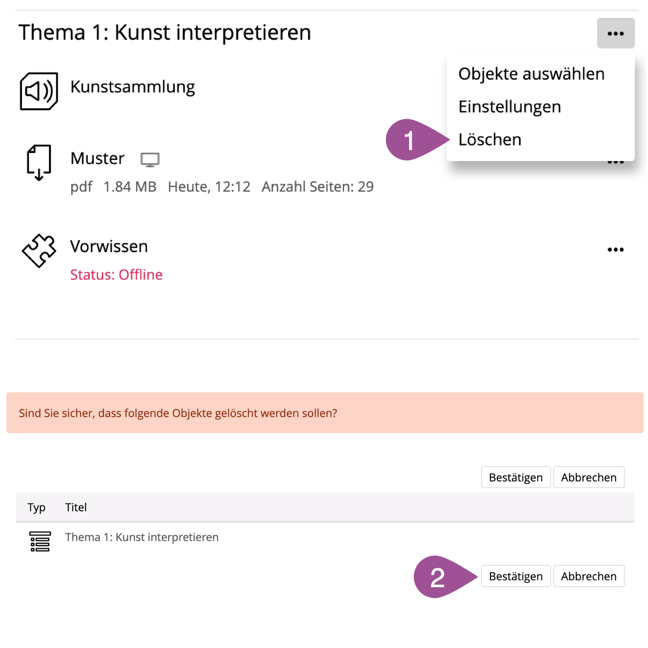 Öffnen Sie das Aktionenmenü des Objekteblocks und wählen Sie «Löschen». | |