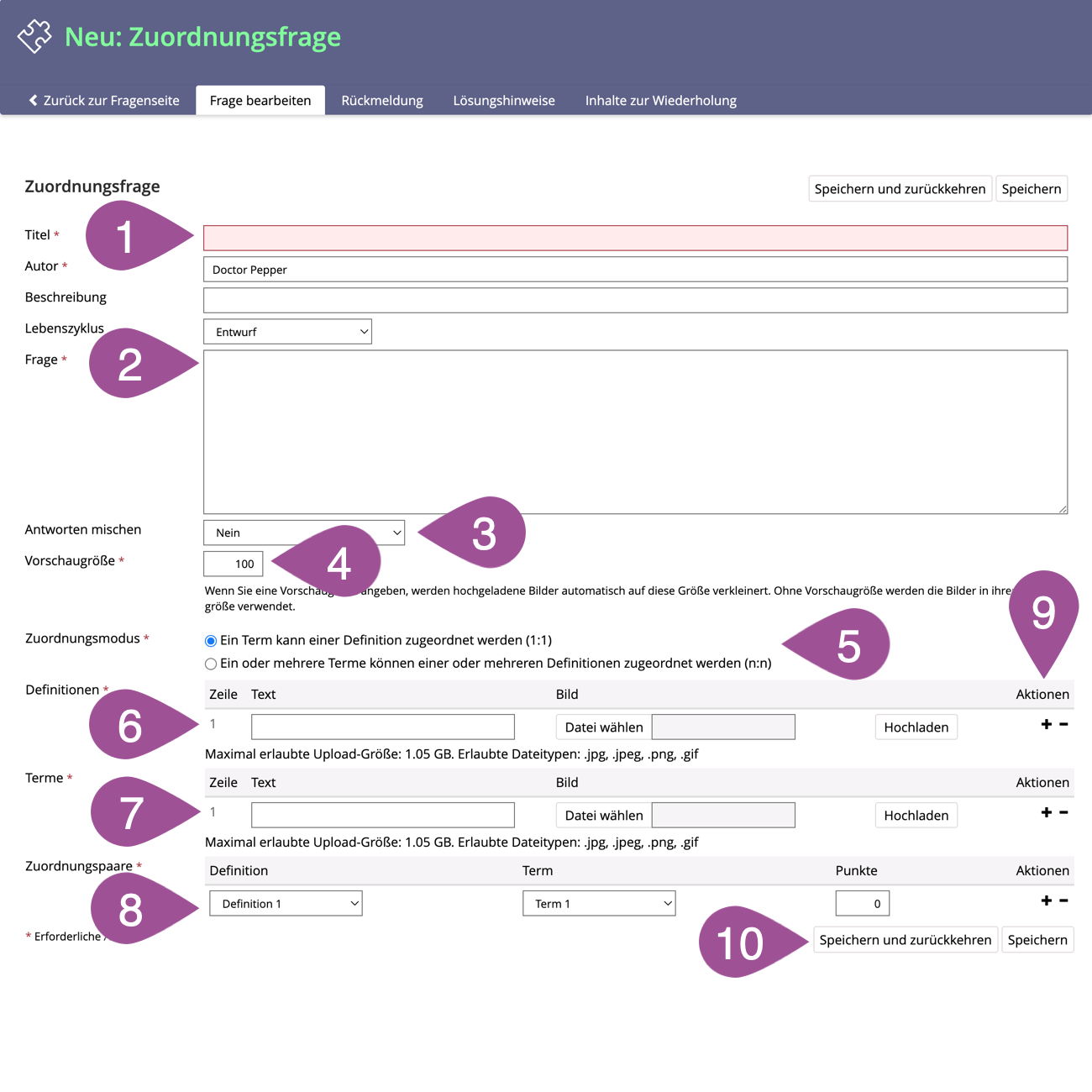 Die Einstellungsmöglichkeiten eines Fragenpools für Tests sind sehr stark begrenzt und werden an dieser Stelle nicht gesondert aufgelistet. Stattdessen werden hier die Einstellungsmöglichkeiten des Tests aufgelistet und im Einzelnen hervorgehoben, wenn etwas auch auf den Fragenpool zutrifft.