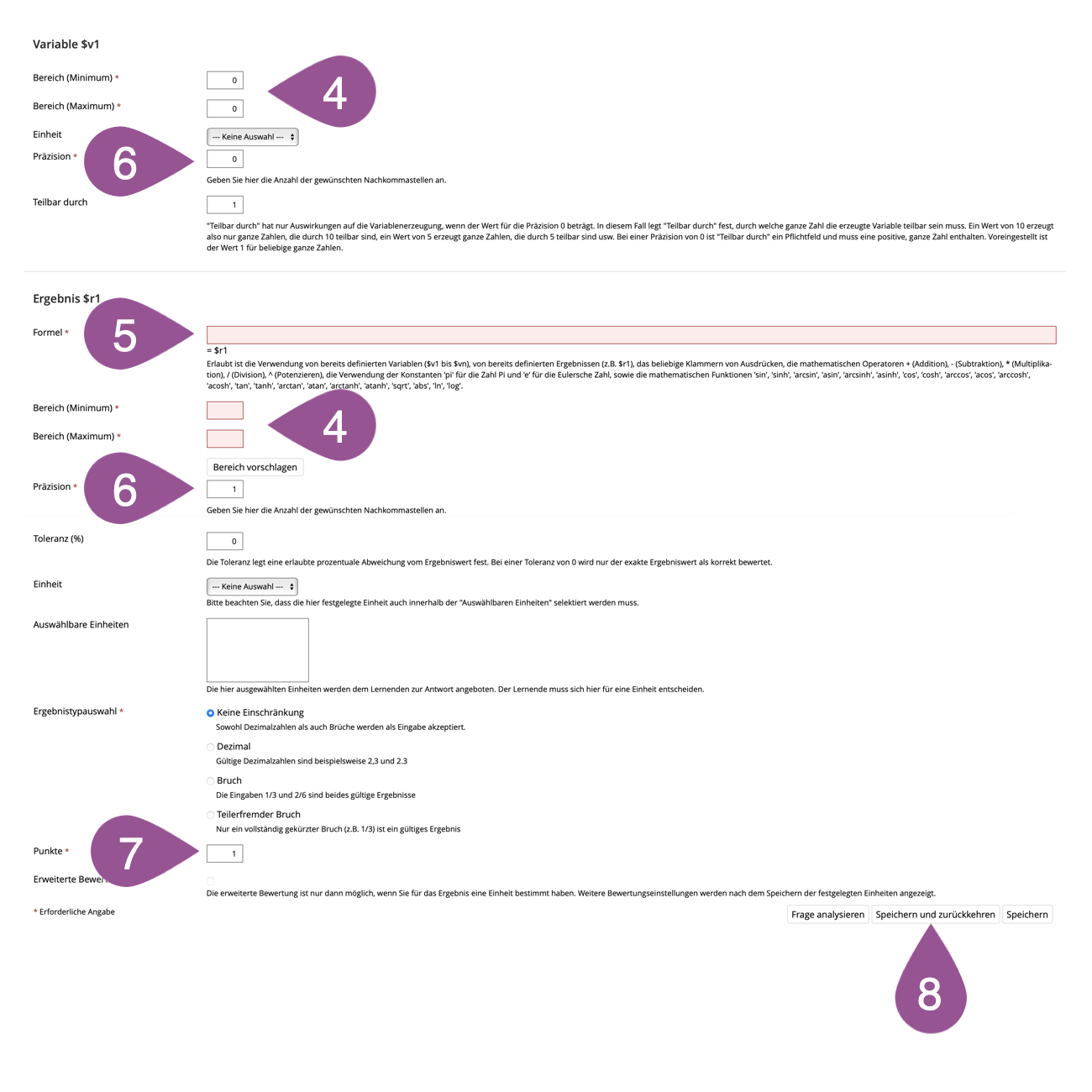 «Bewertung des Tests»: Legen Sie fest, ob Teillösungen möglich sein sollen, wie Aufgaben bewertet werden, ob negative Punkte möglich sein sollen und wie die Bewertung bei mehreren Testdurchläufen aussehen soll. | |
