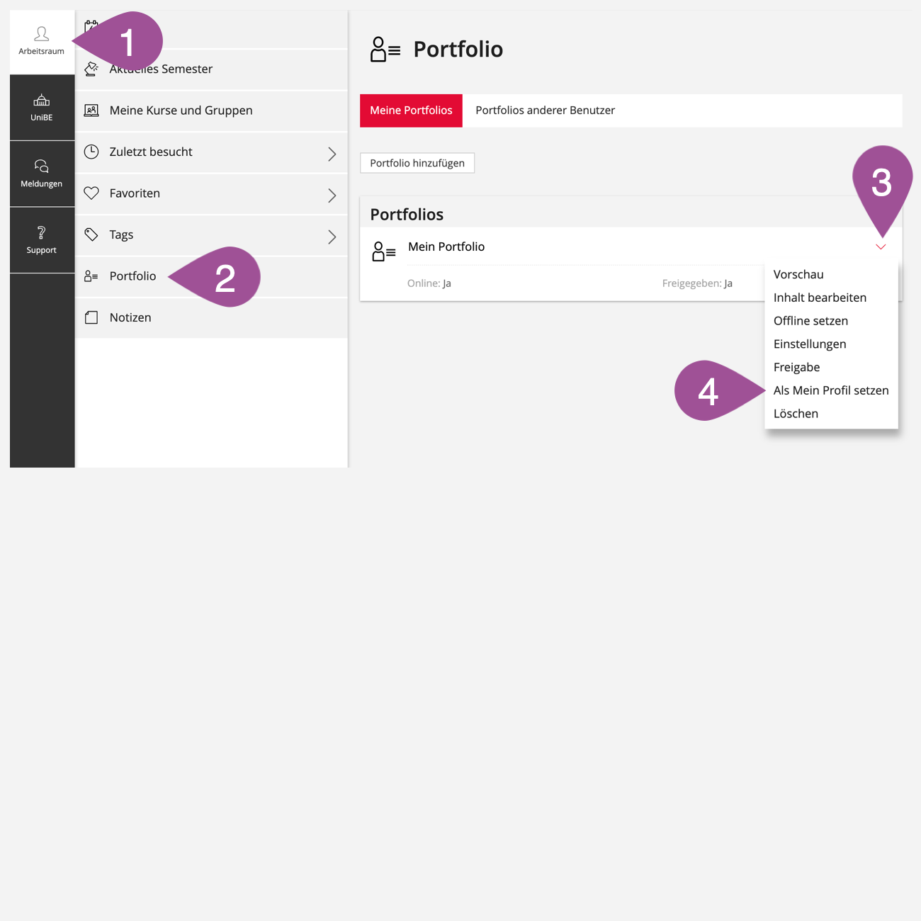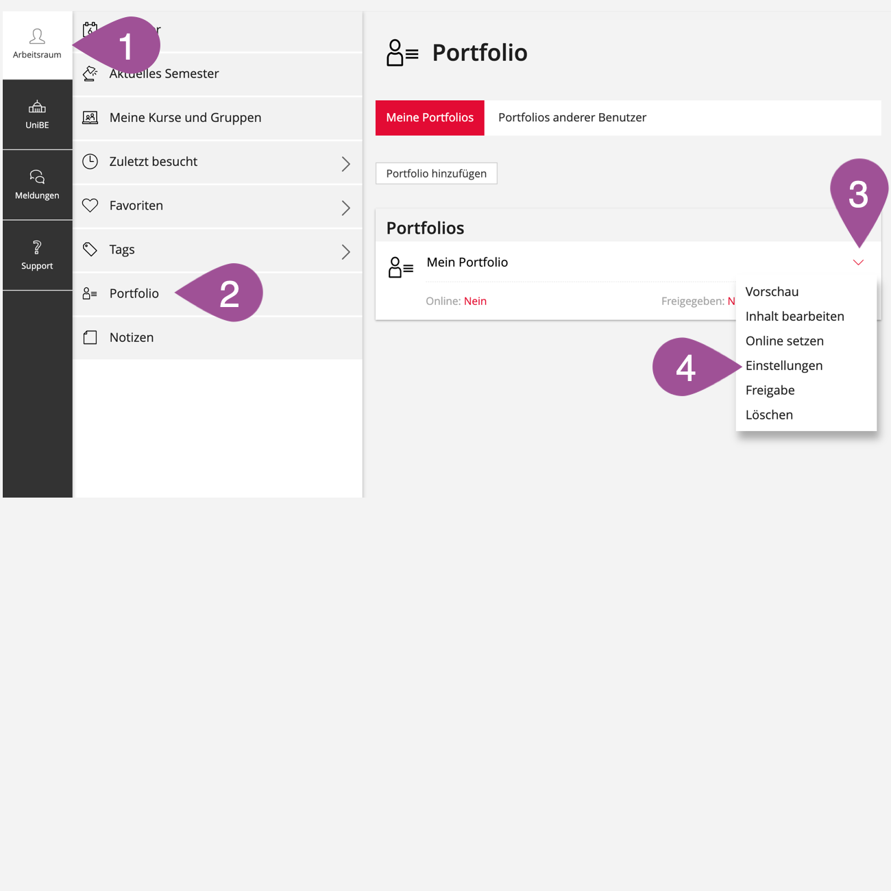 3.1 Einstellungen des Portfolios aufrufen