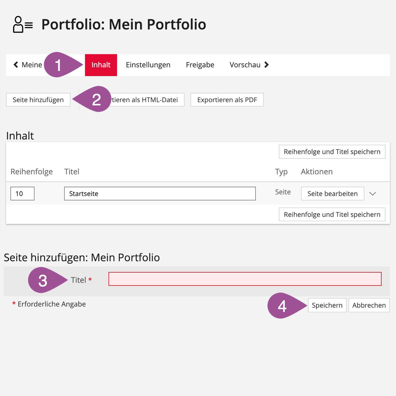 Geben Sie dem Portfolio einen Titel. | |||||