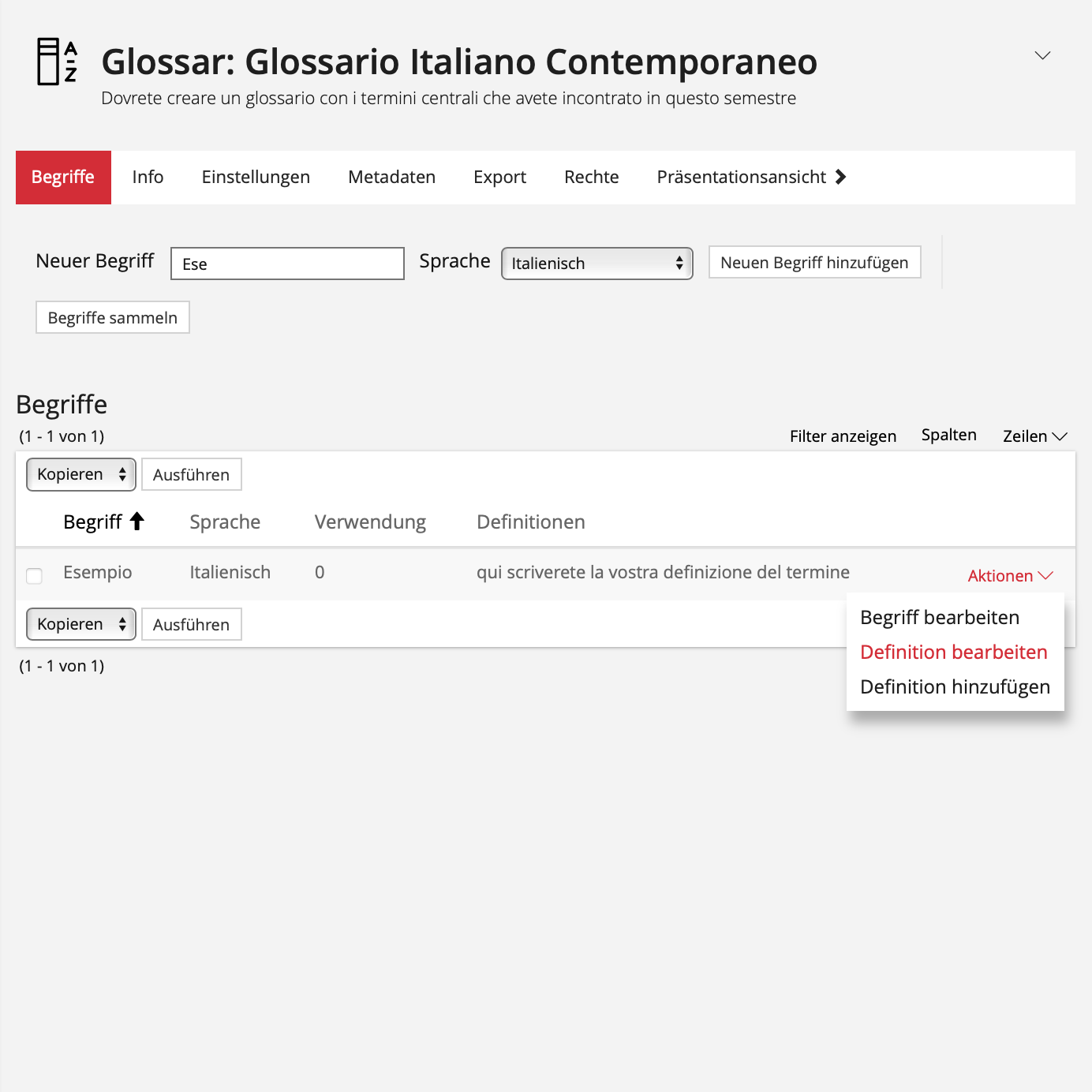 - Students can add terms to the glossary and define them