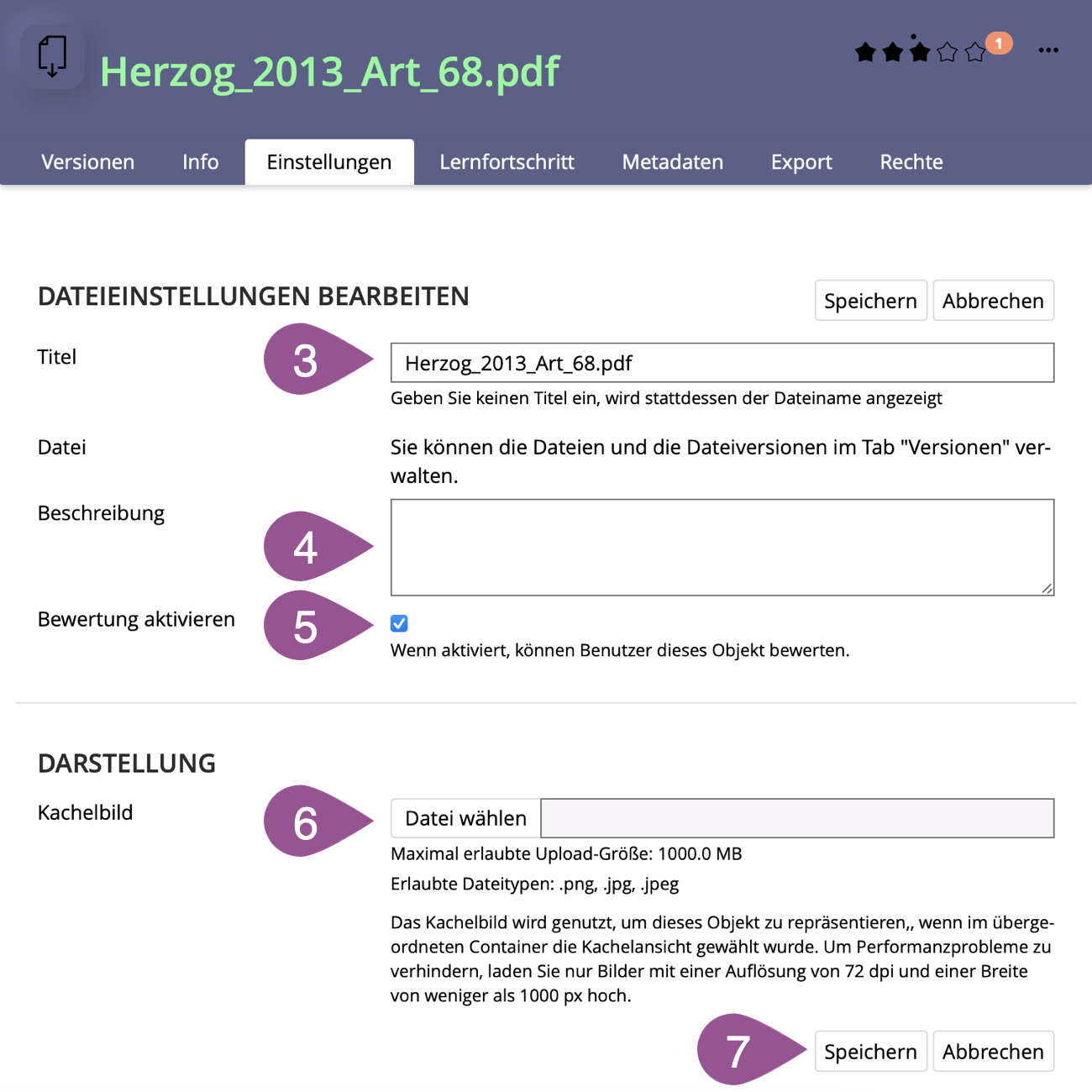 You can activate the «Rating». The rating is displayed directly below the file. Files can be rated by clicking on the stars. | |