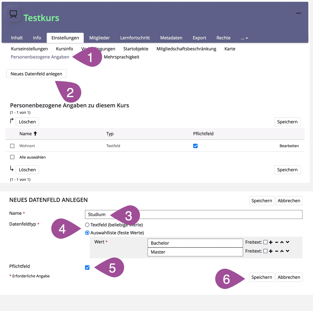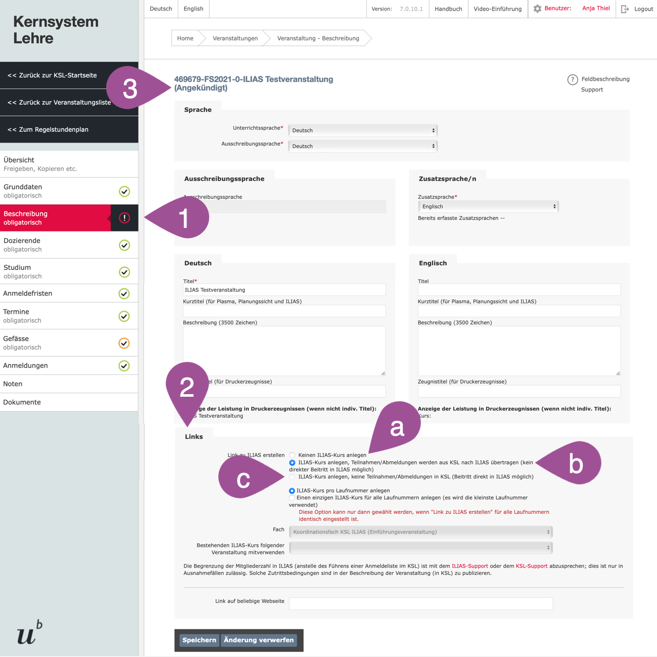 At the end of the description in the «Links» section, you can choose if and how the KSL course should be linked to an ILIAS course.