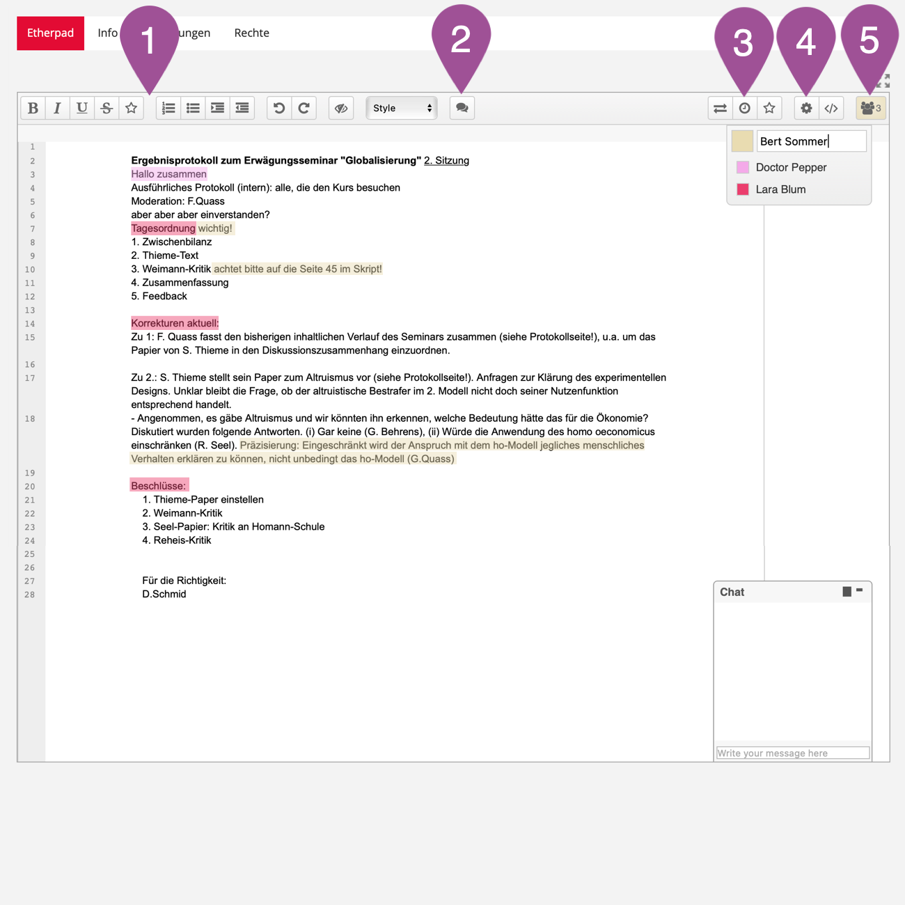 The following pages will give you an idea of how an etherpad can be used: