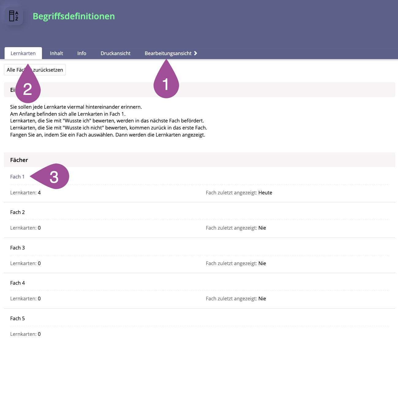 Select the «Flashcards» tab. If this is not displayed, activate Flashcards in the settings.