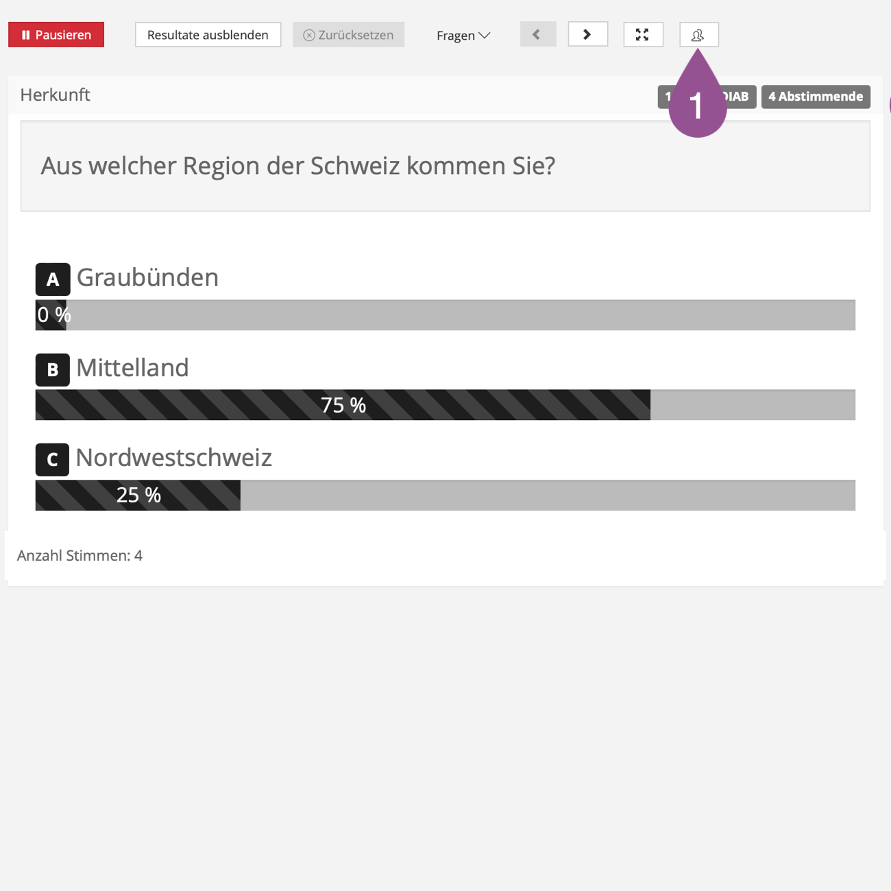 Via «Reset» you can delete already given answers and thus restart a voting.