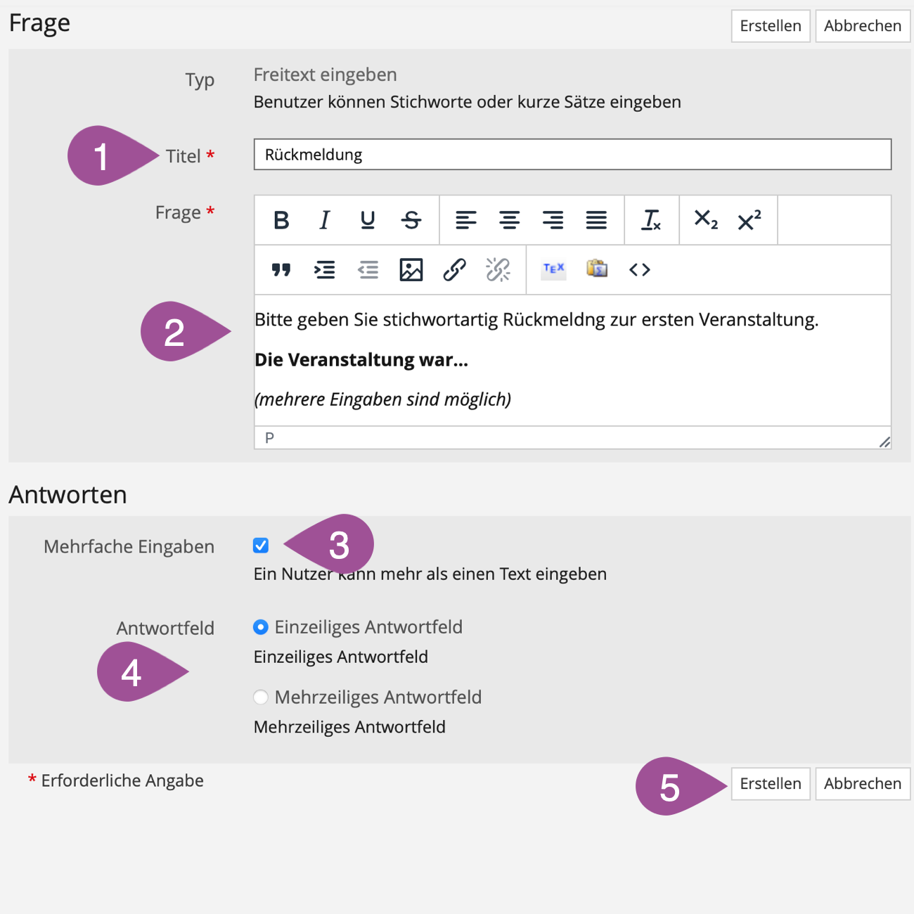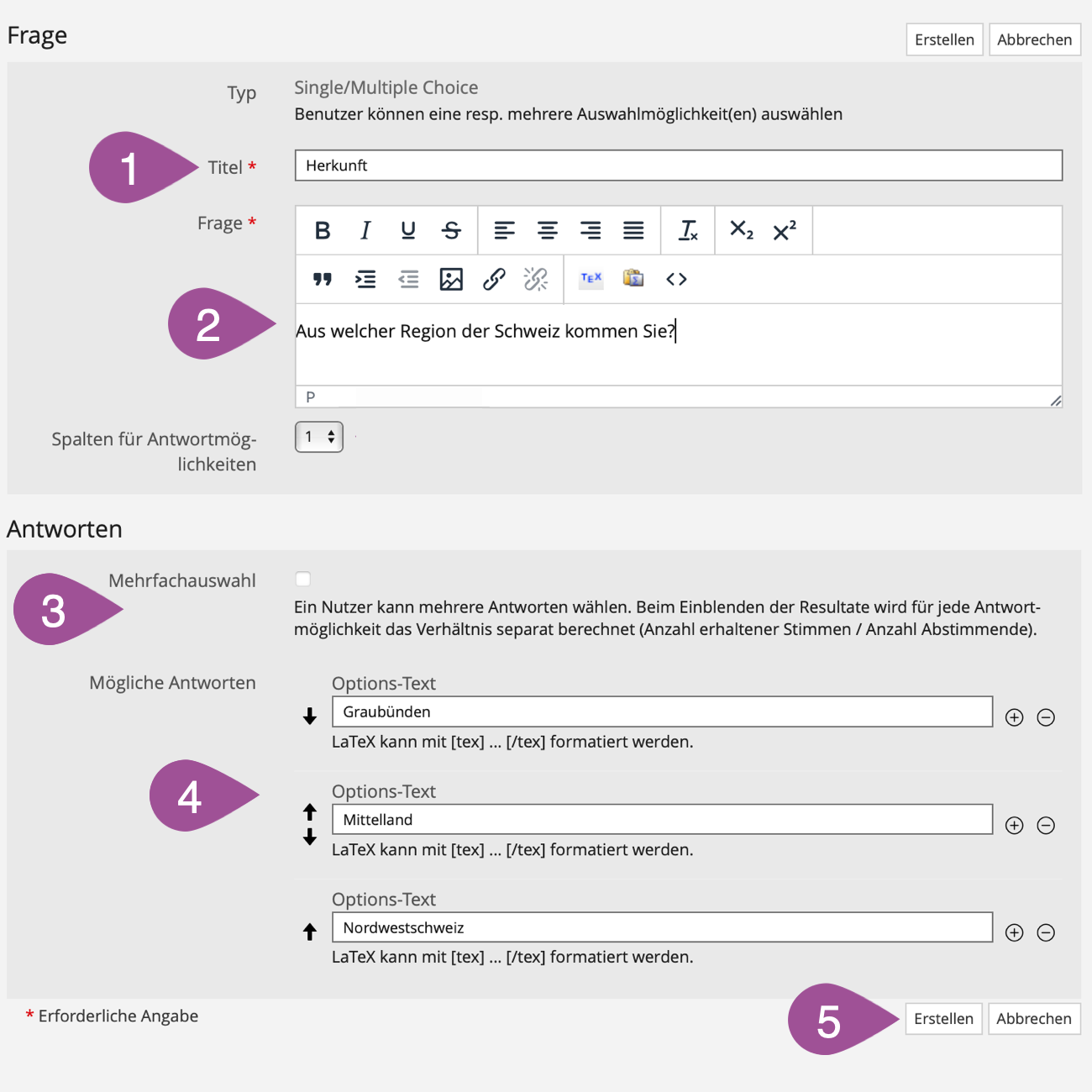Participants can select one answer (single choice) or several answers (multiple choice) from predefined answer options.