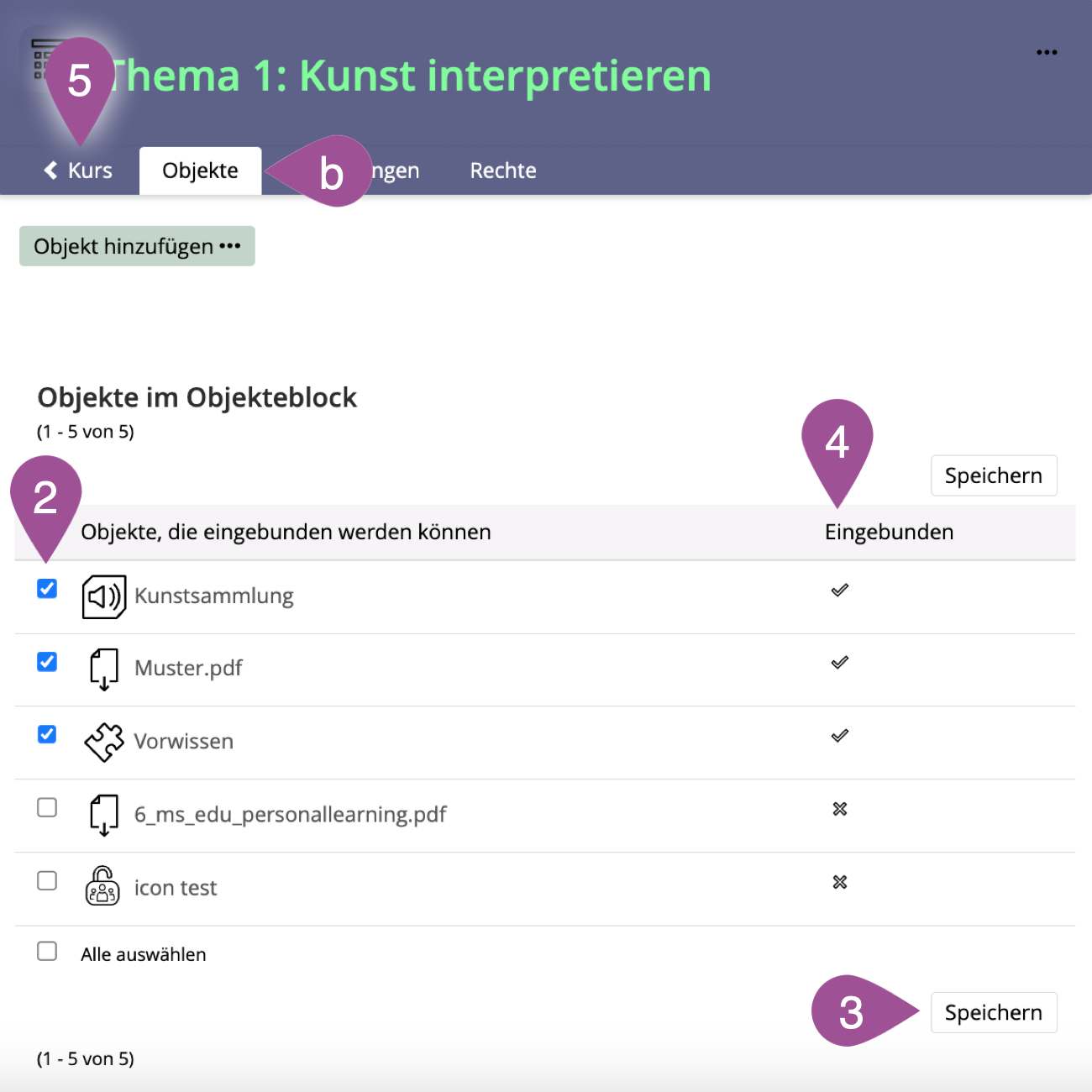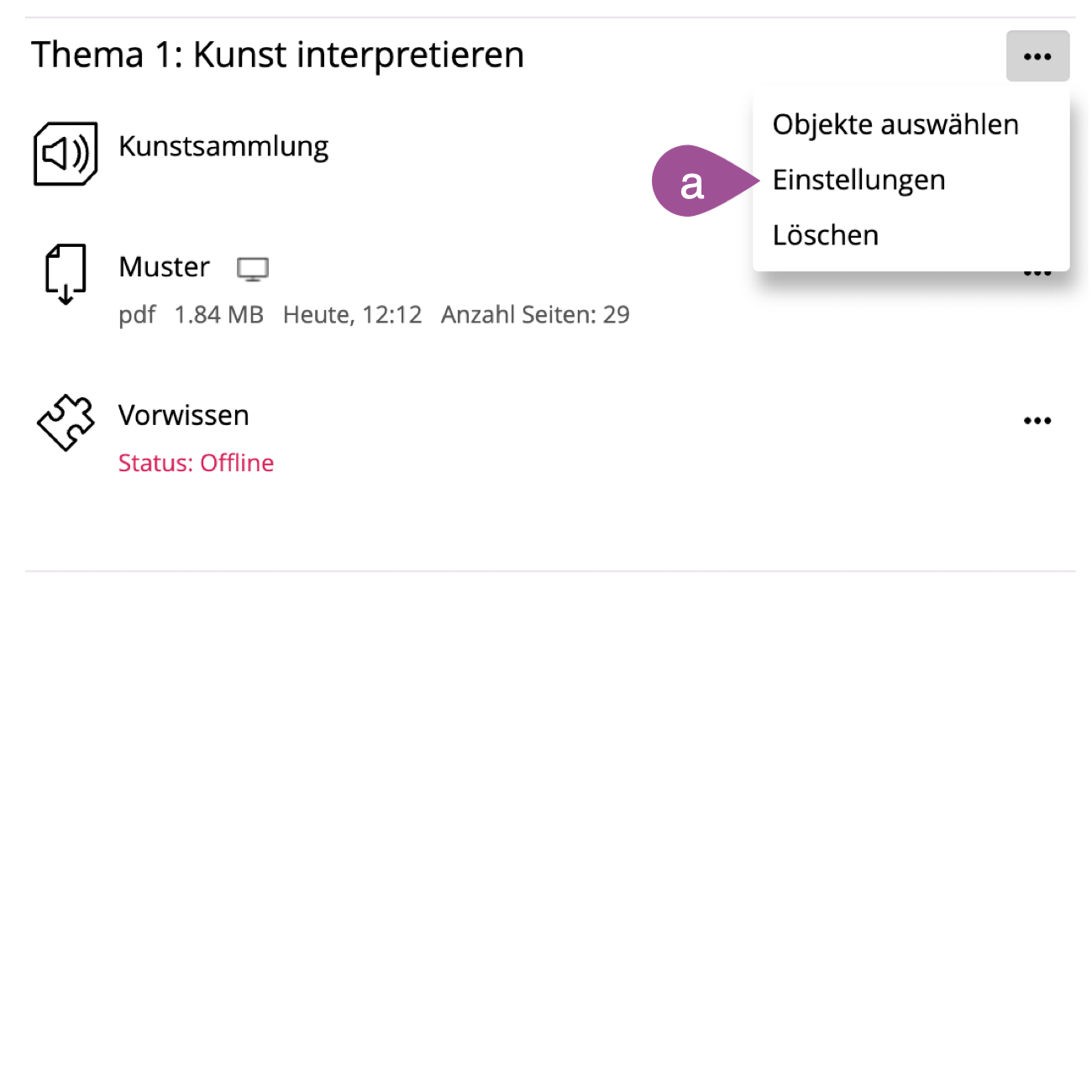 To view the item group, on the parent container (e.g., «Course») in the upper left corner. |