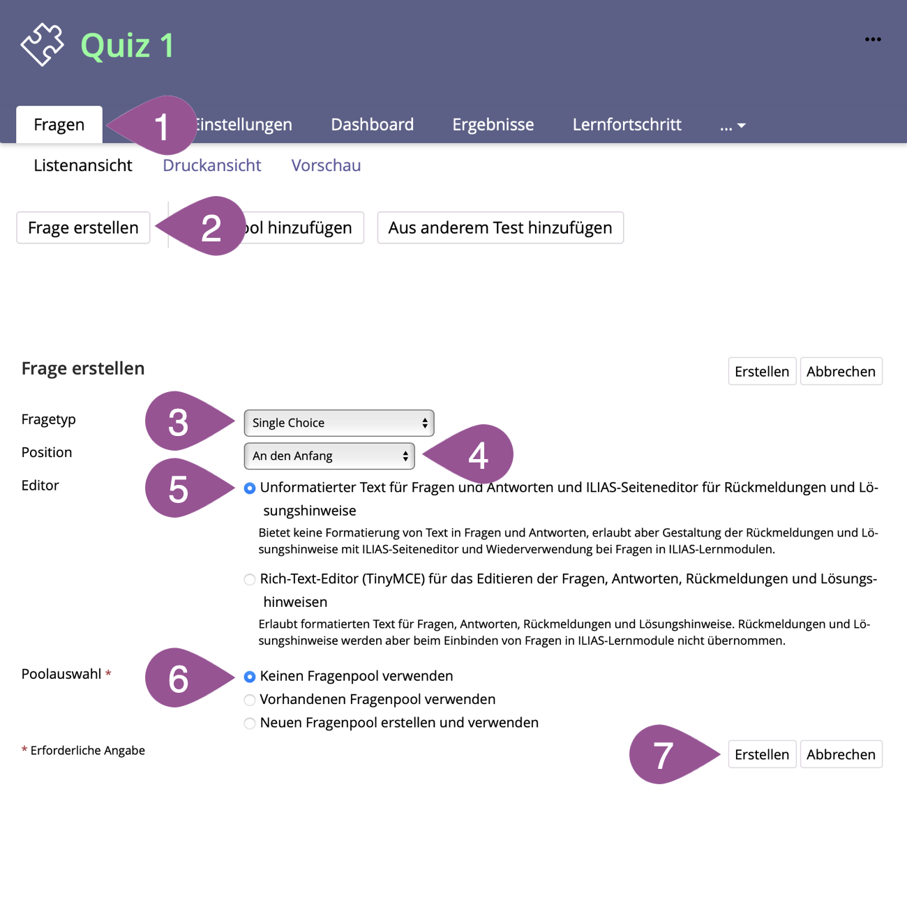 Question pools are therefore not required but offer the option of creating questions outside of a test and then using them simultaneously in different tests and learning modules or randomly adding questions to a test.