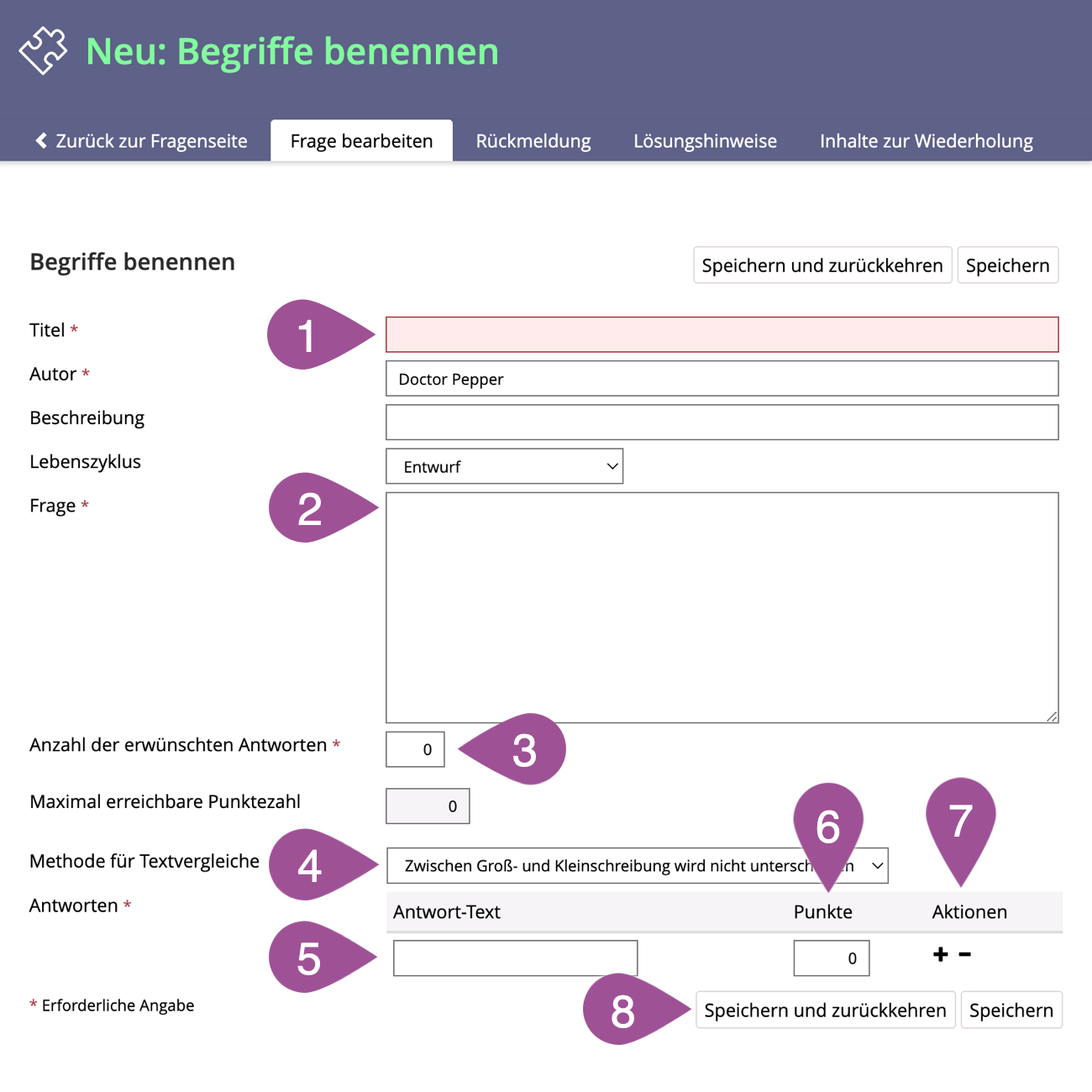 Gehen Sie zum Register «Fragen». | |