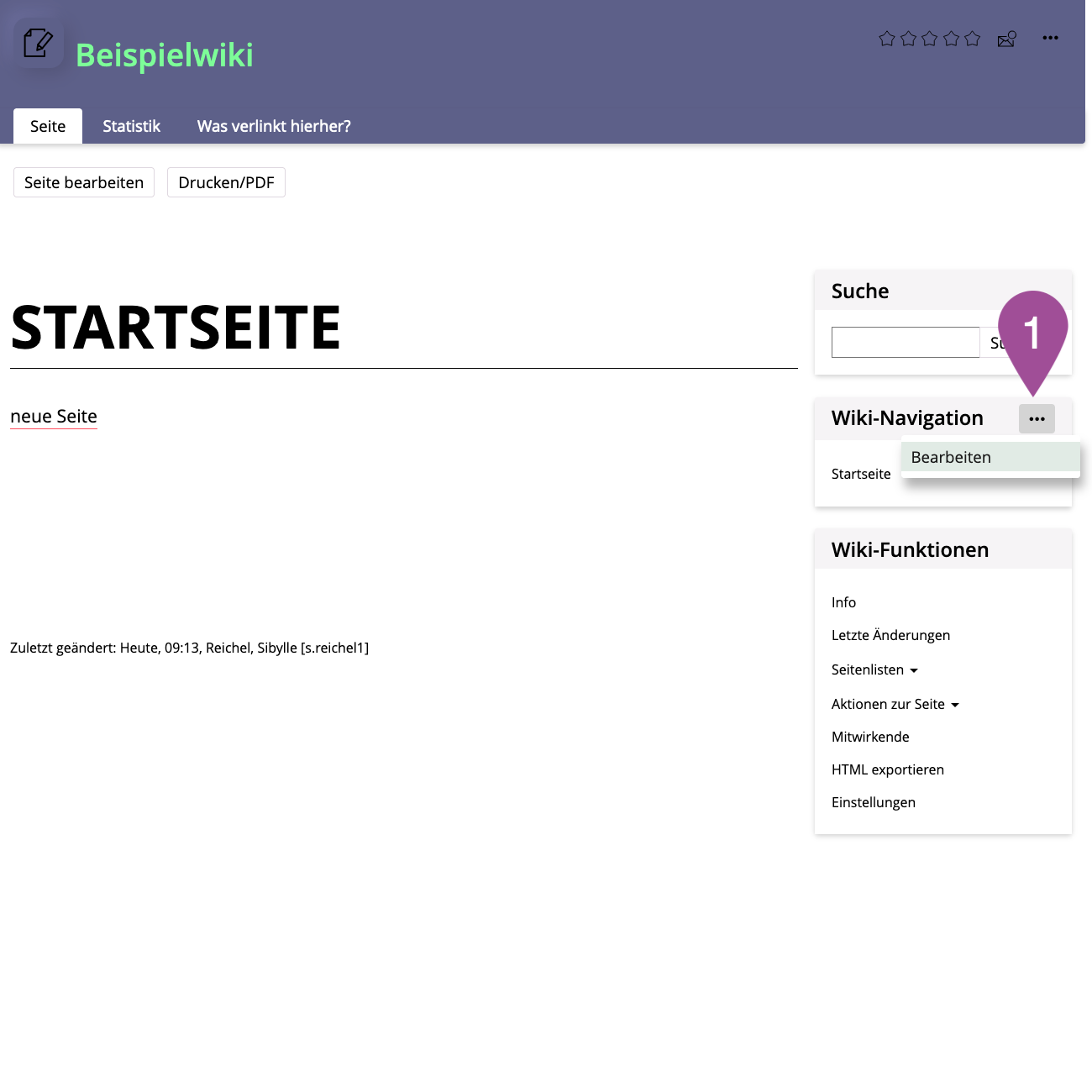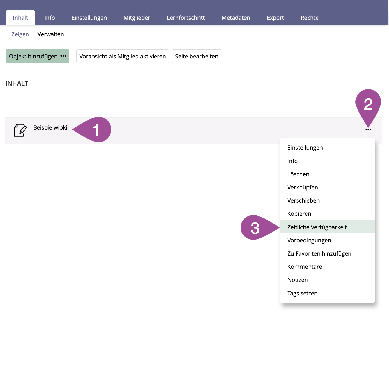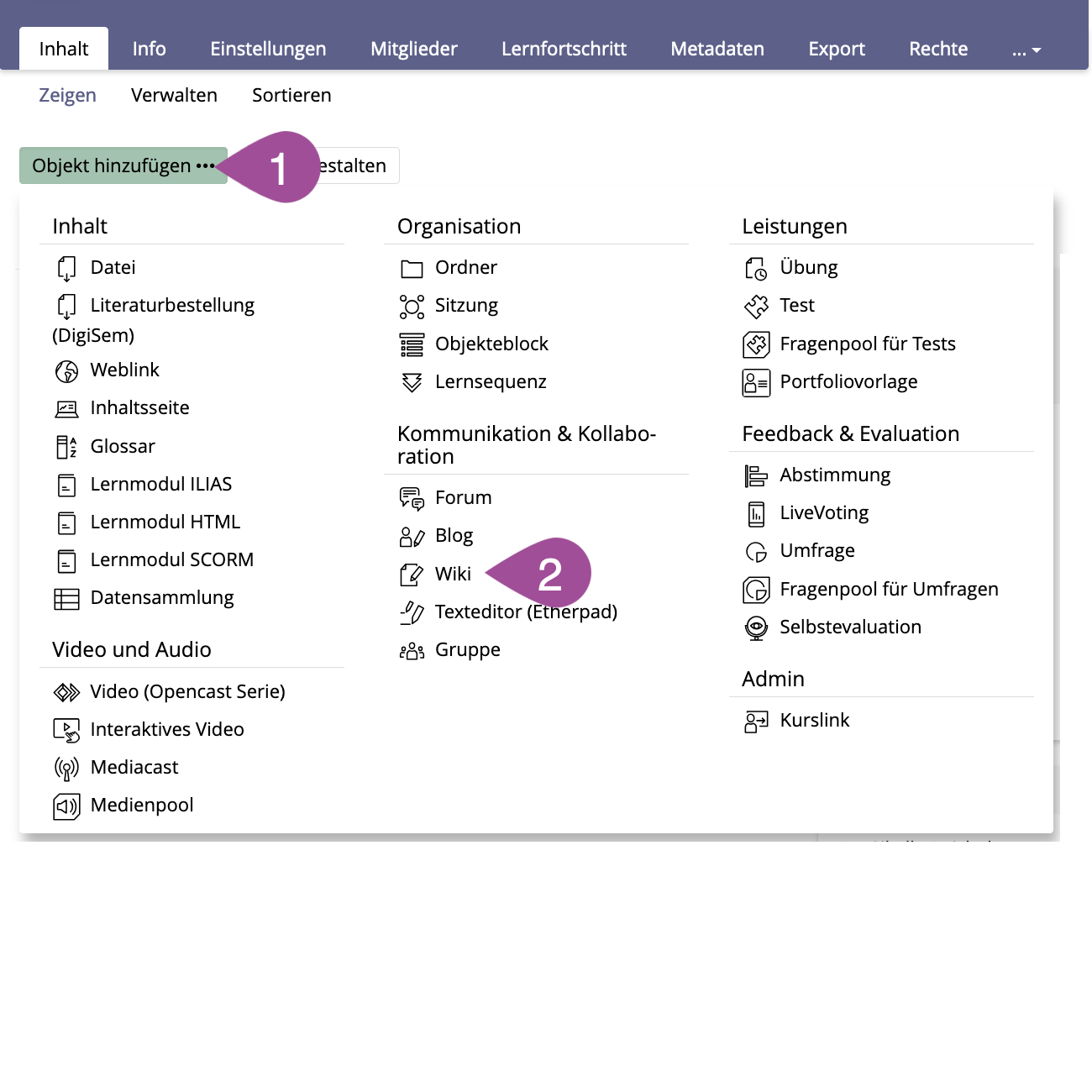 Go to the location on ILIAS where you have stored the wiki. | |
