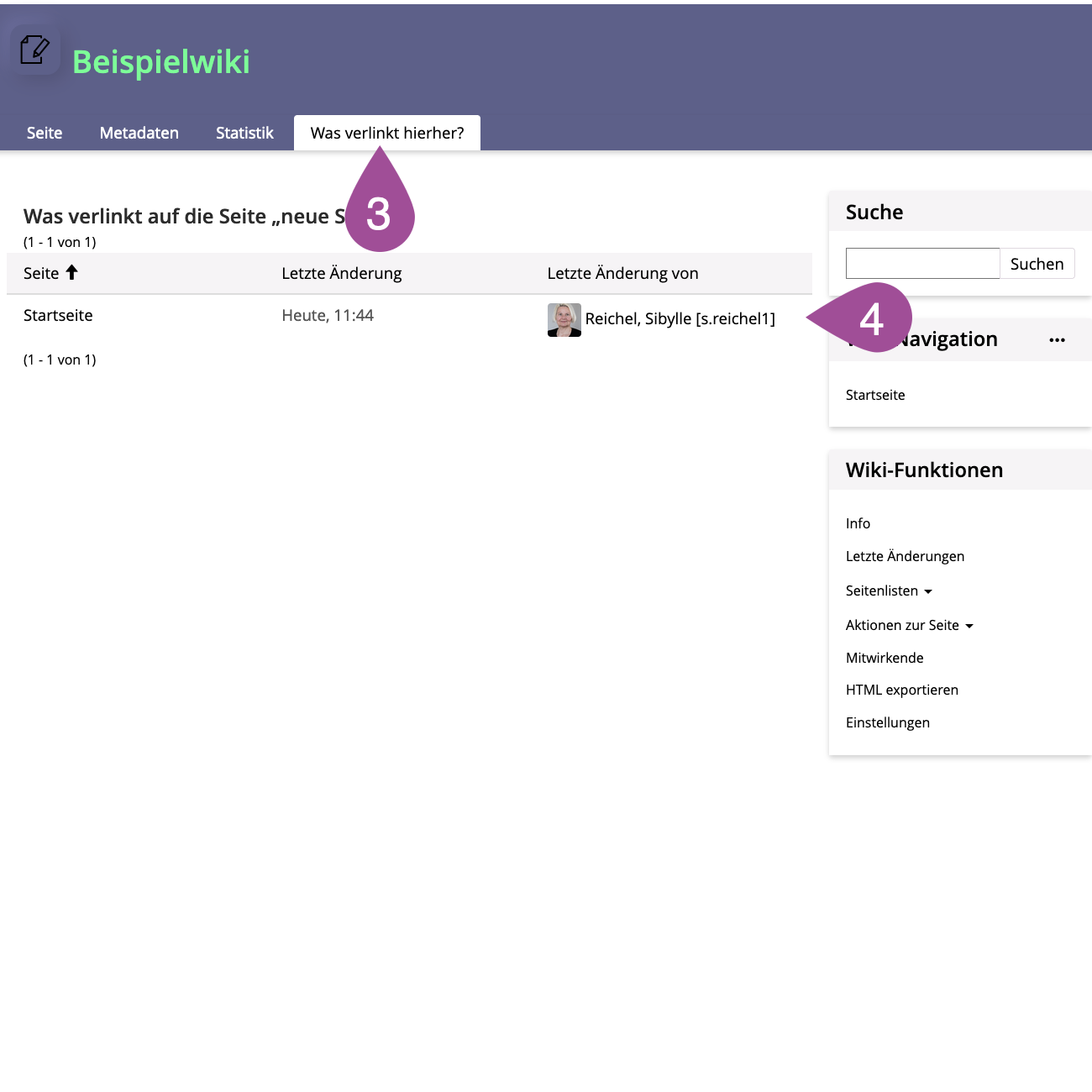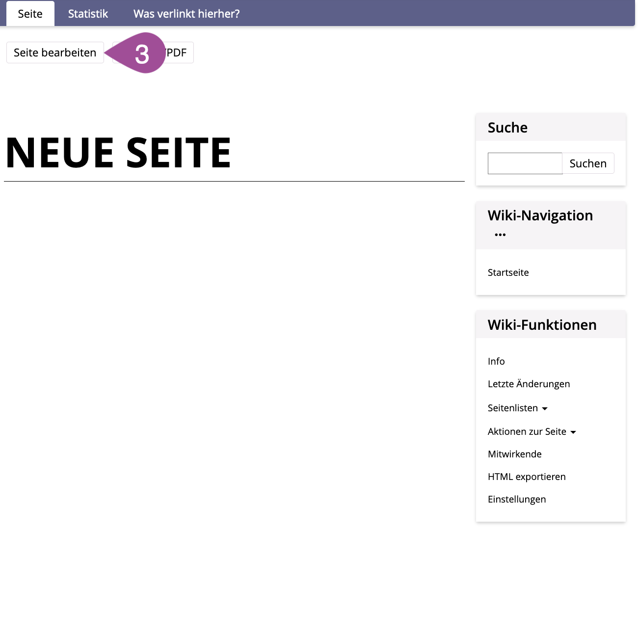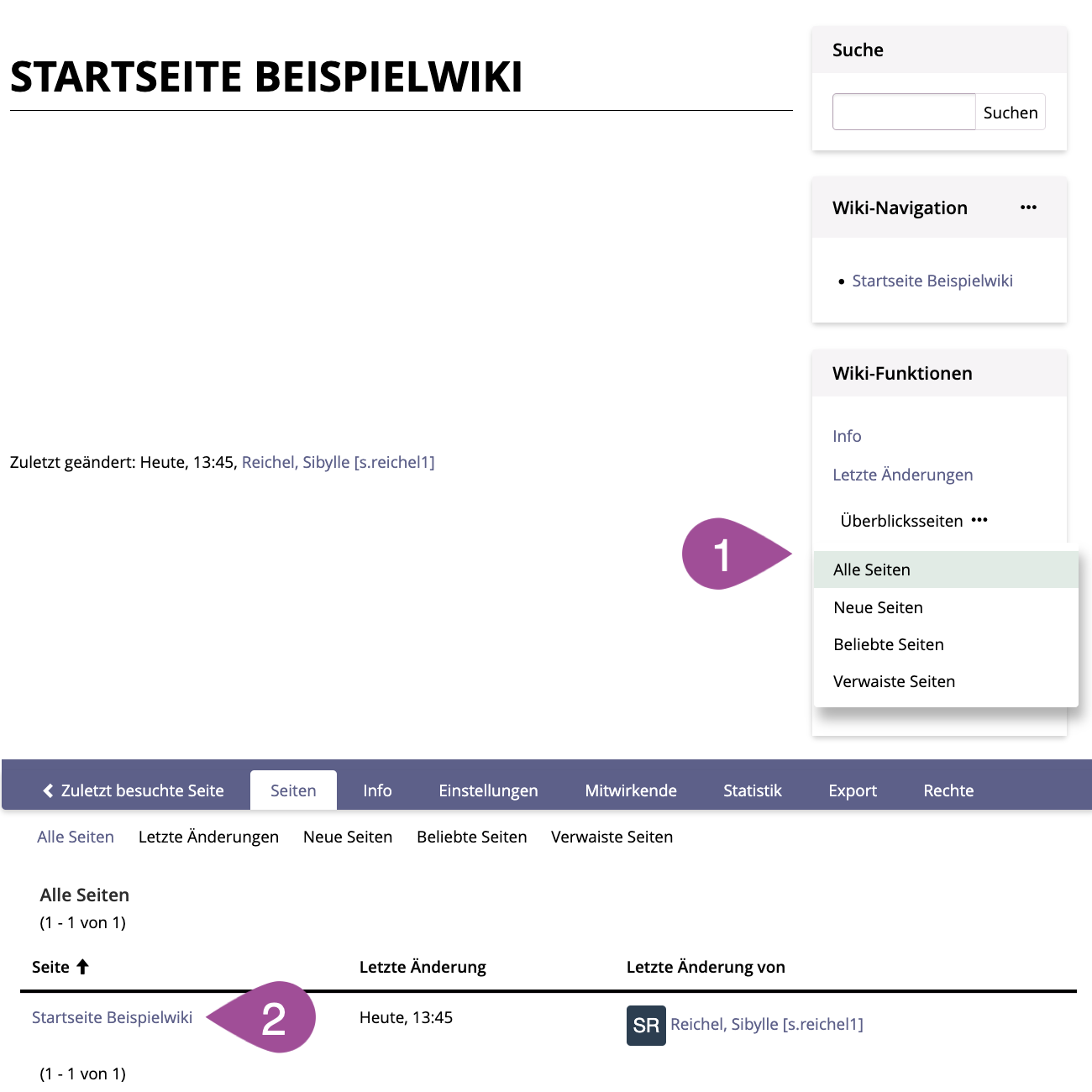 Go to the location on ILIAS where you have stored the wiki. | |