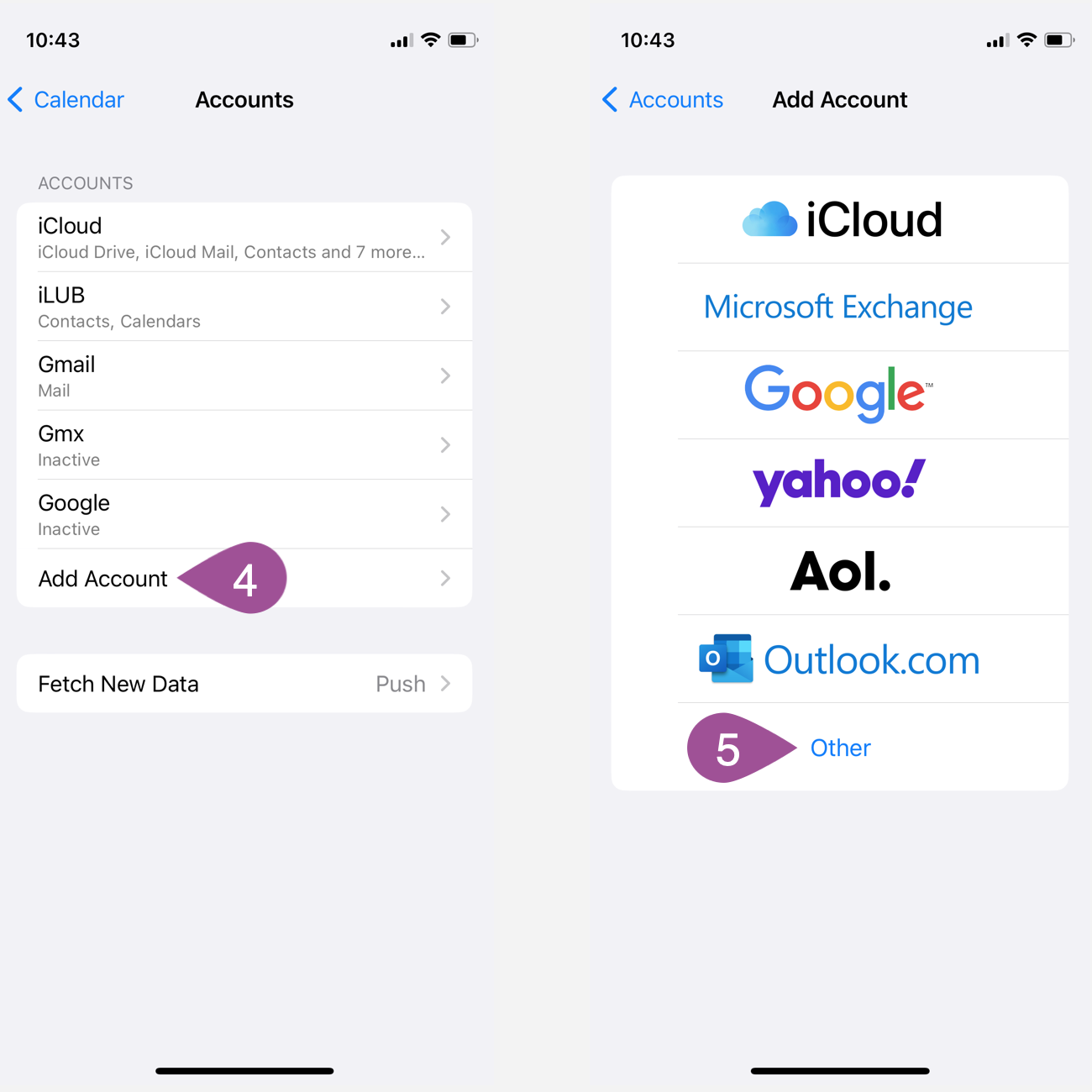 Wenn Sie zum Einrichten keinen Mac haben (macOS), können Sie die iCal-URL direkt in den Einstellungen Ihres iPhones abonnieren. Der iPhone Kalender aktualisiert das Kalenderabonnement nach jedem Neustart des Kalenders.