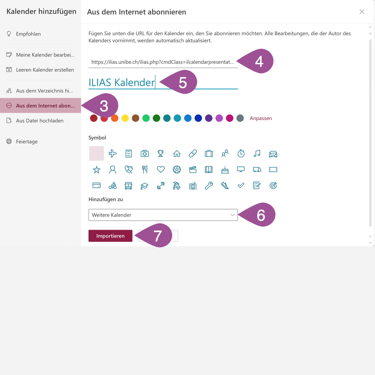 4. Den ILIAS Kalender in einem externen Kalender abonnieren