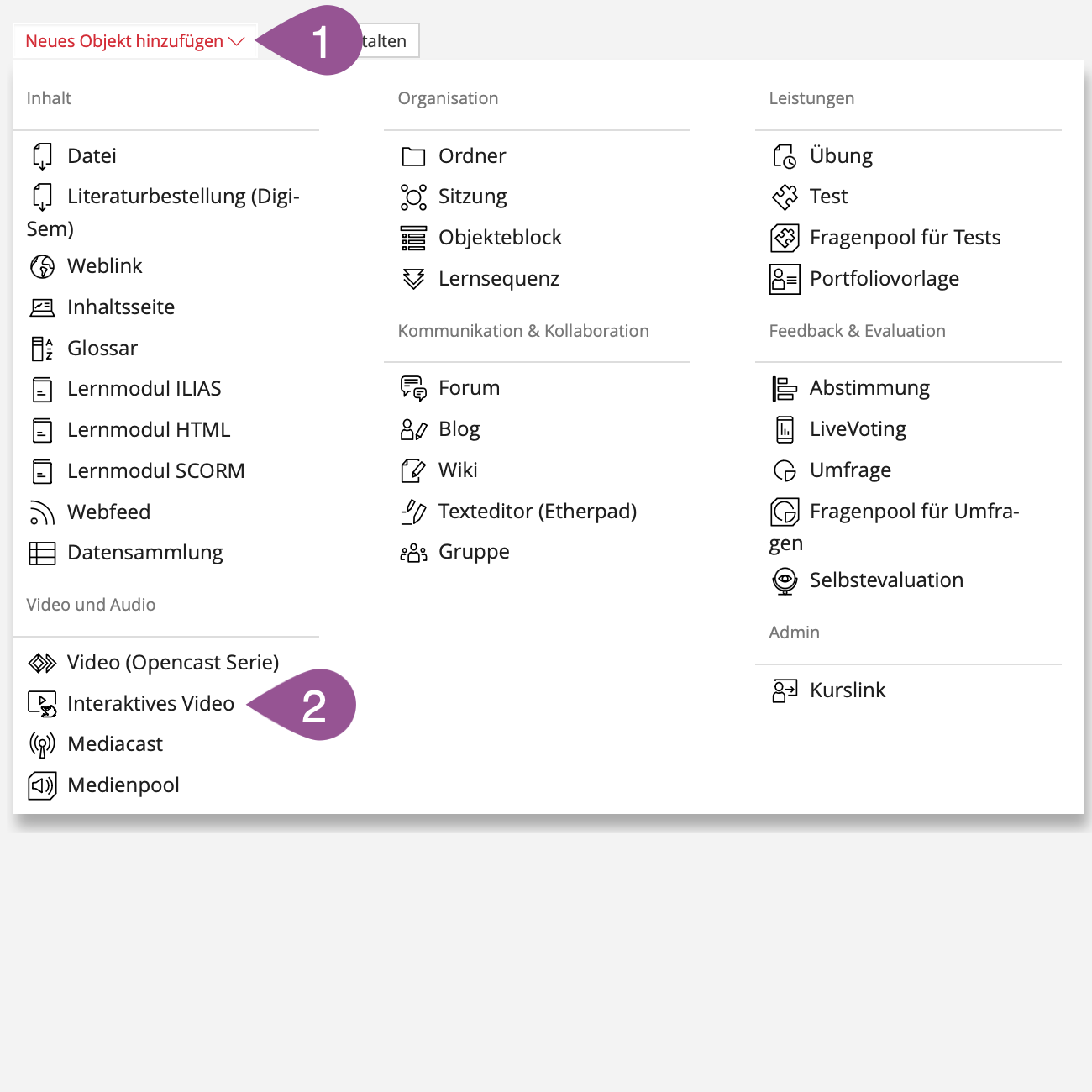 Gehen Sie an den Ort auf ILIAS, an dem Sie das Interaktive Video abgelegt haben. | |